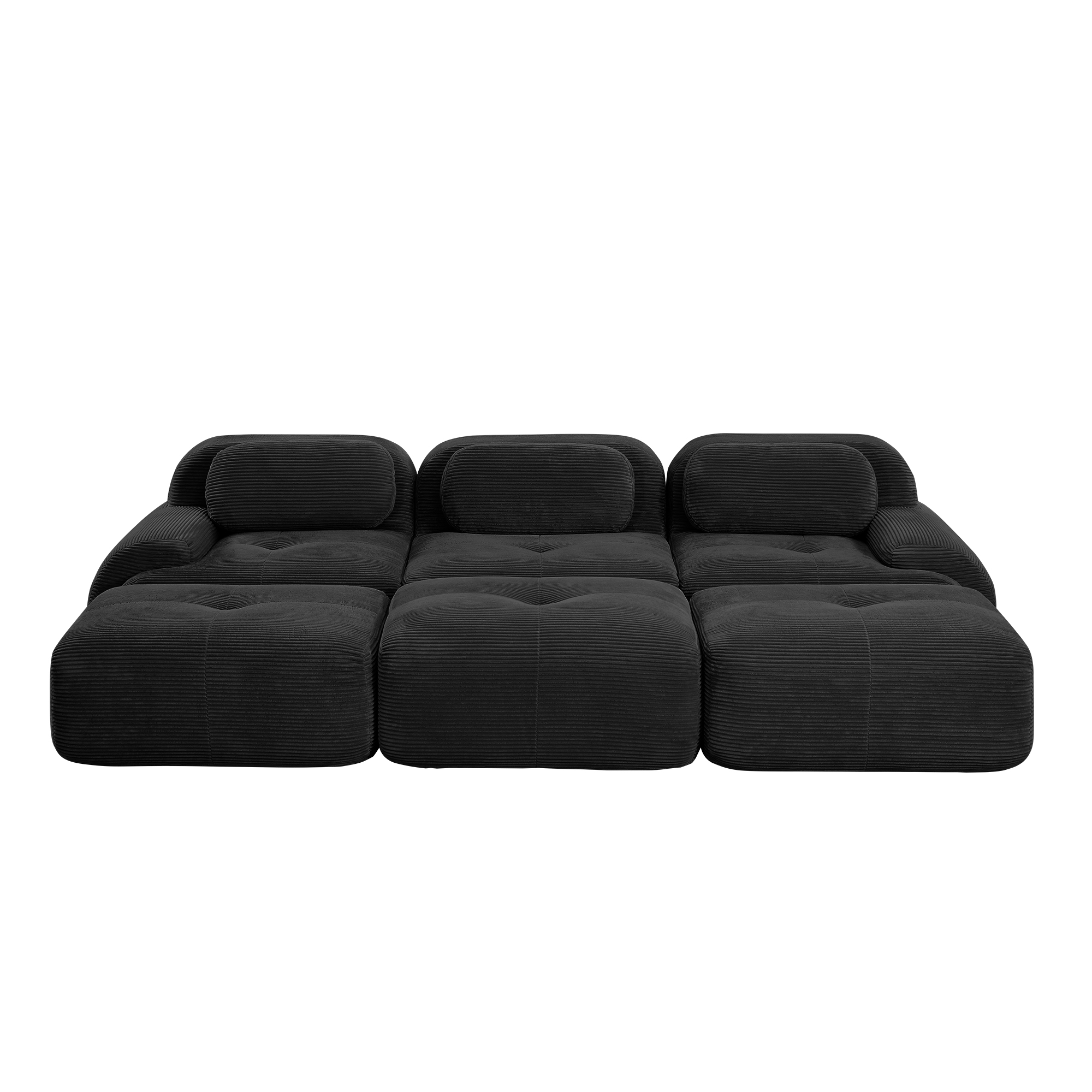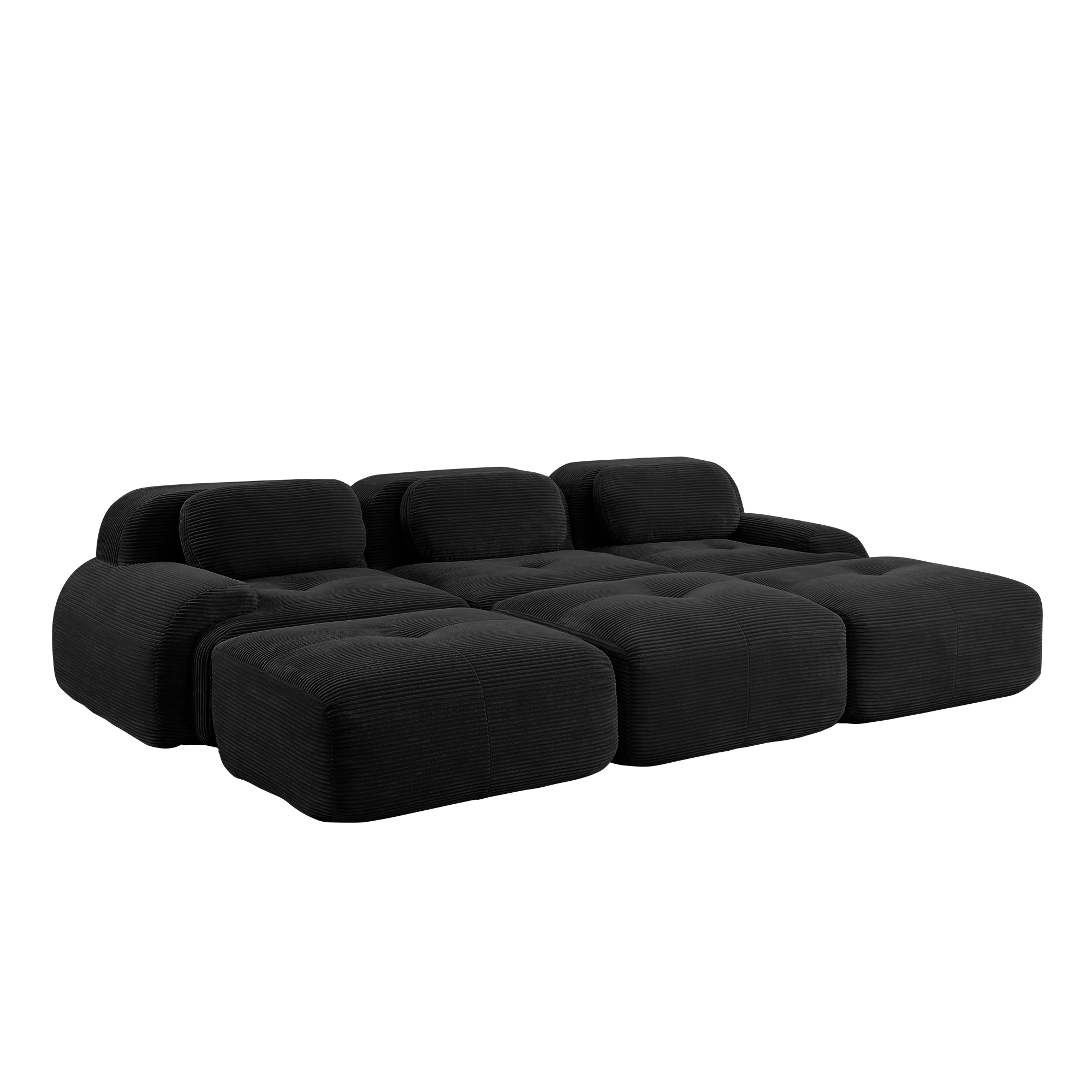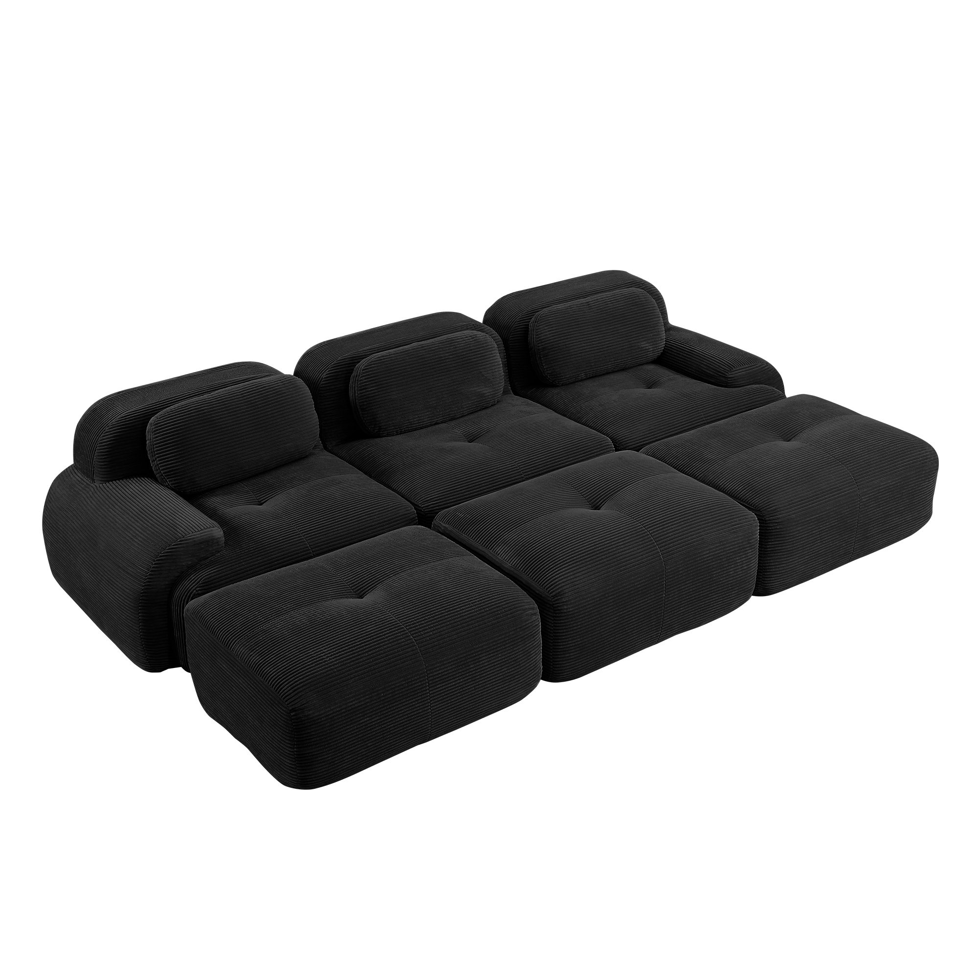 Product Name:Three-seat modular sofa with 3 Ottomans corduroy fabric no assembly pet-friendly ultra-wide curved armrests 32D high-resilience sponge living rooms media rooms,Black