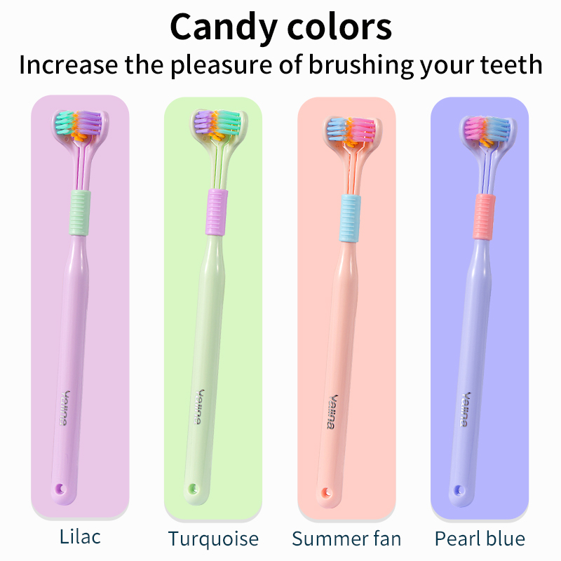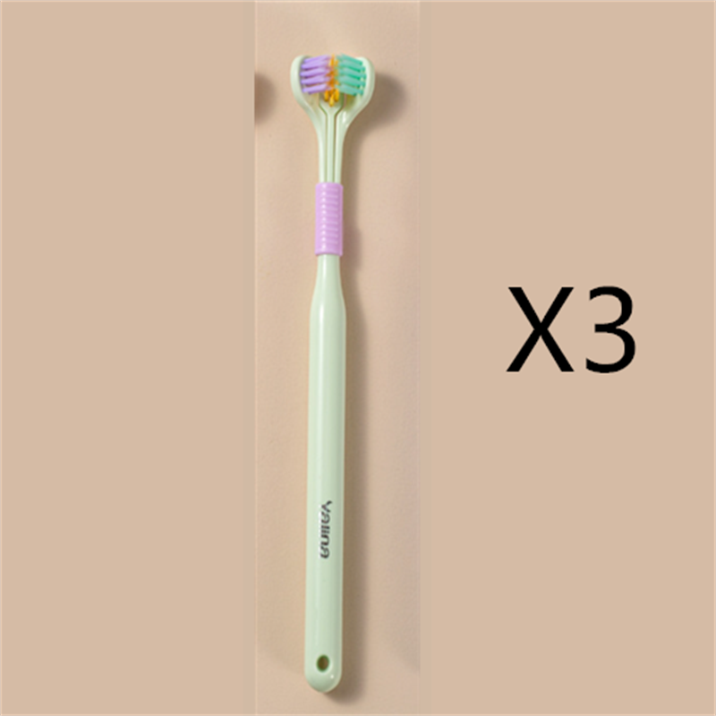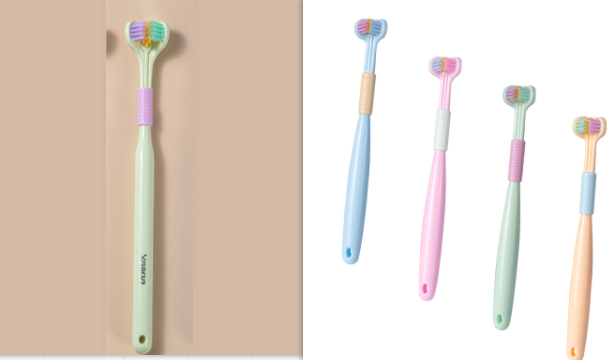 1. This toothbrush has a 3-sided brush head to cover different sides of your teeth, easily save time cleaning your teeth and keep them in good condition.