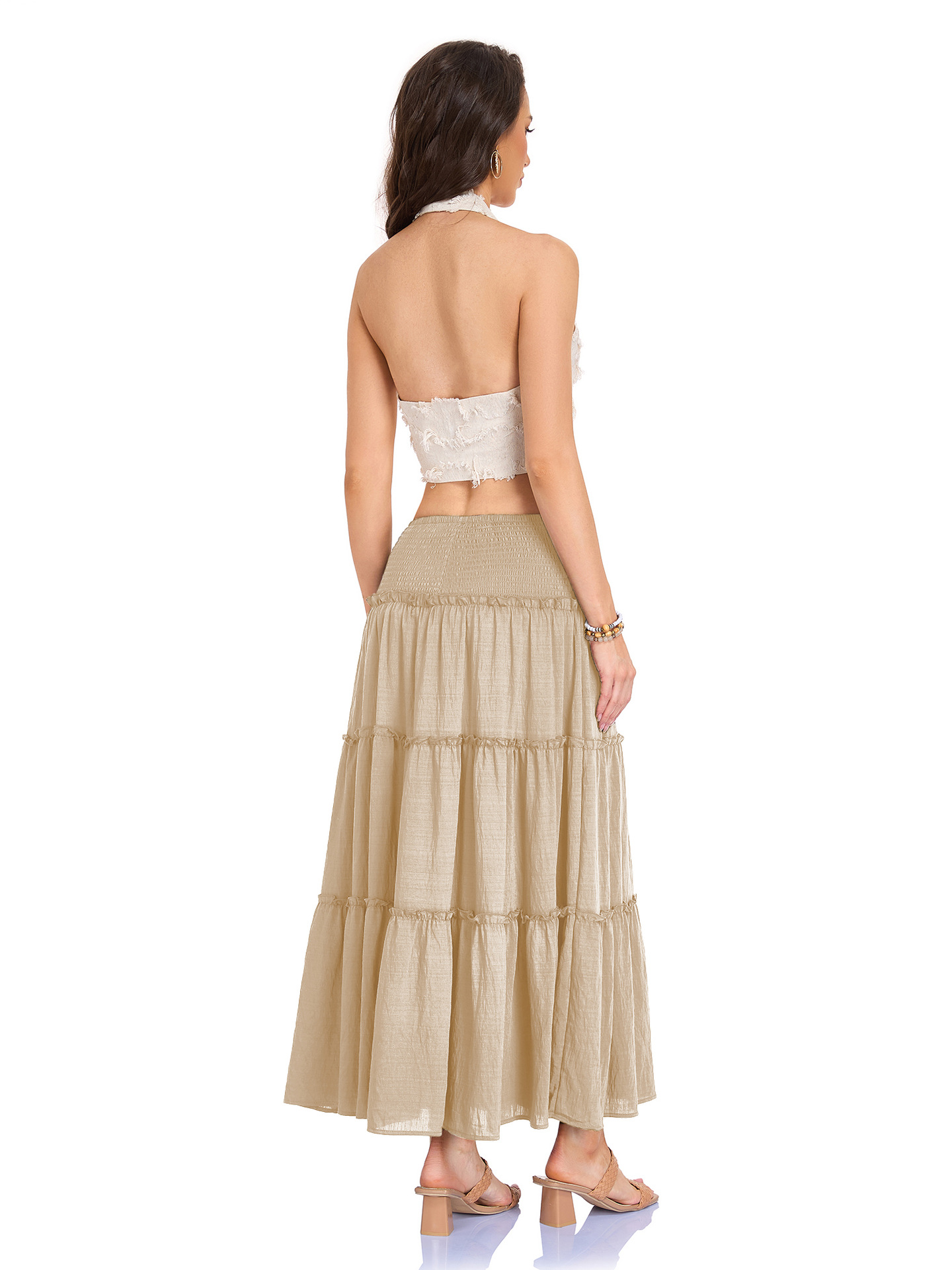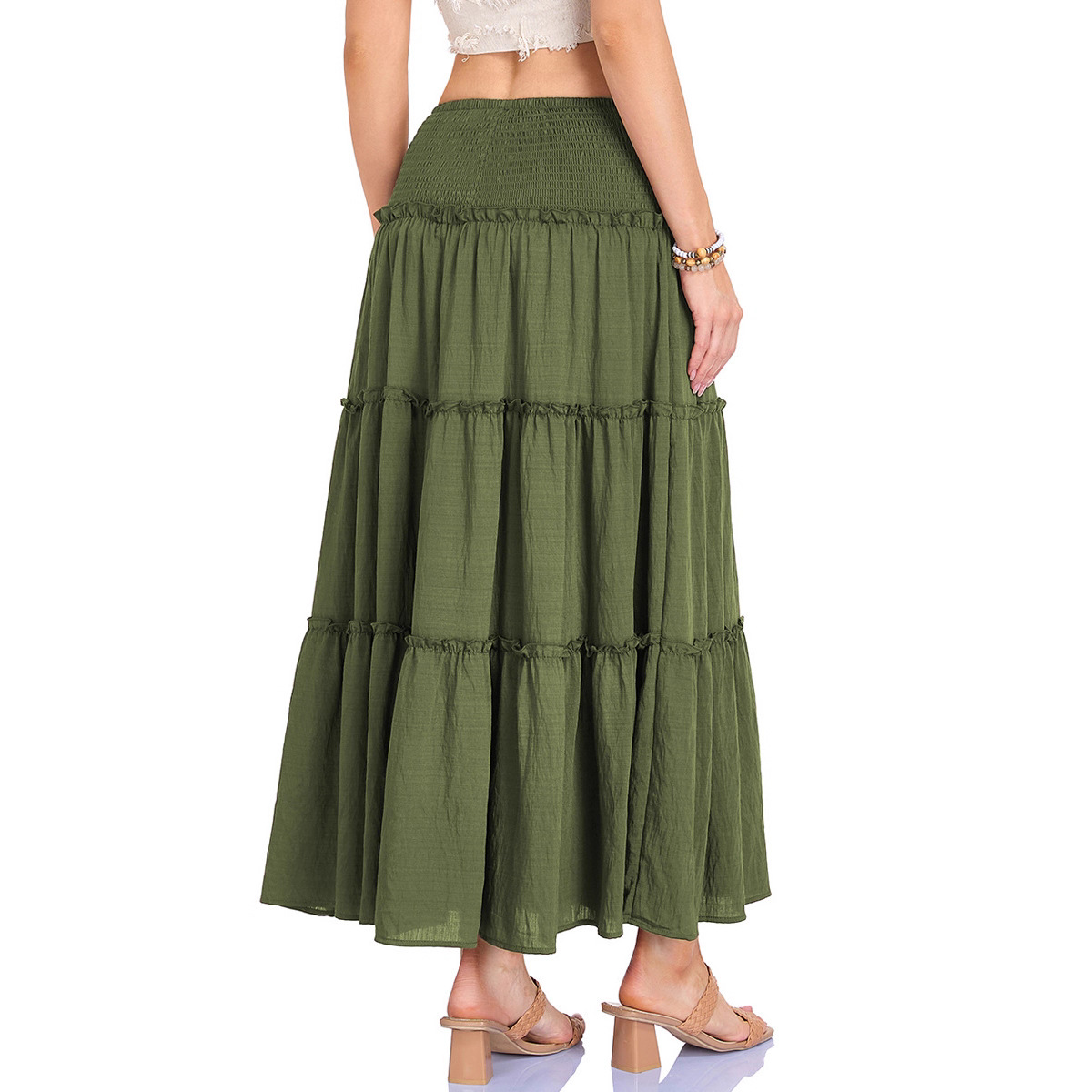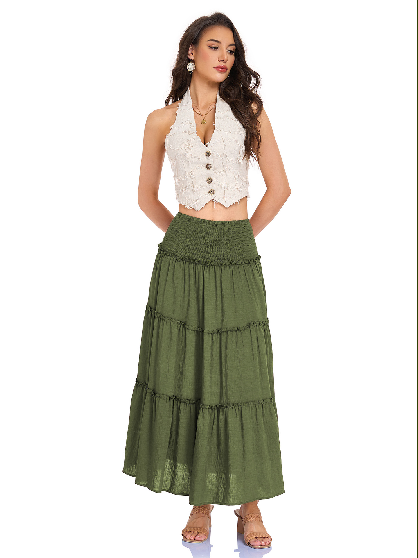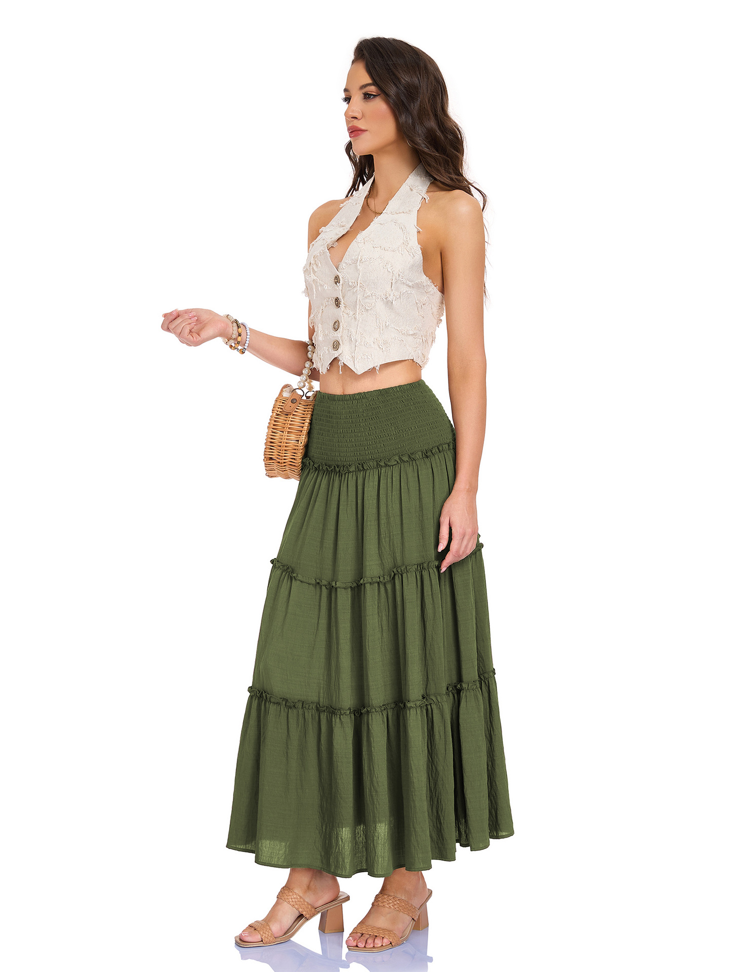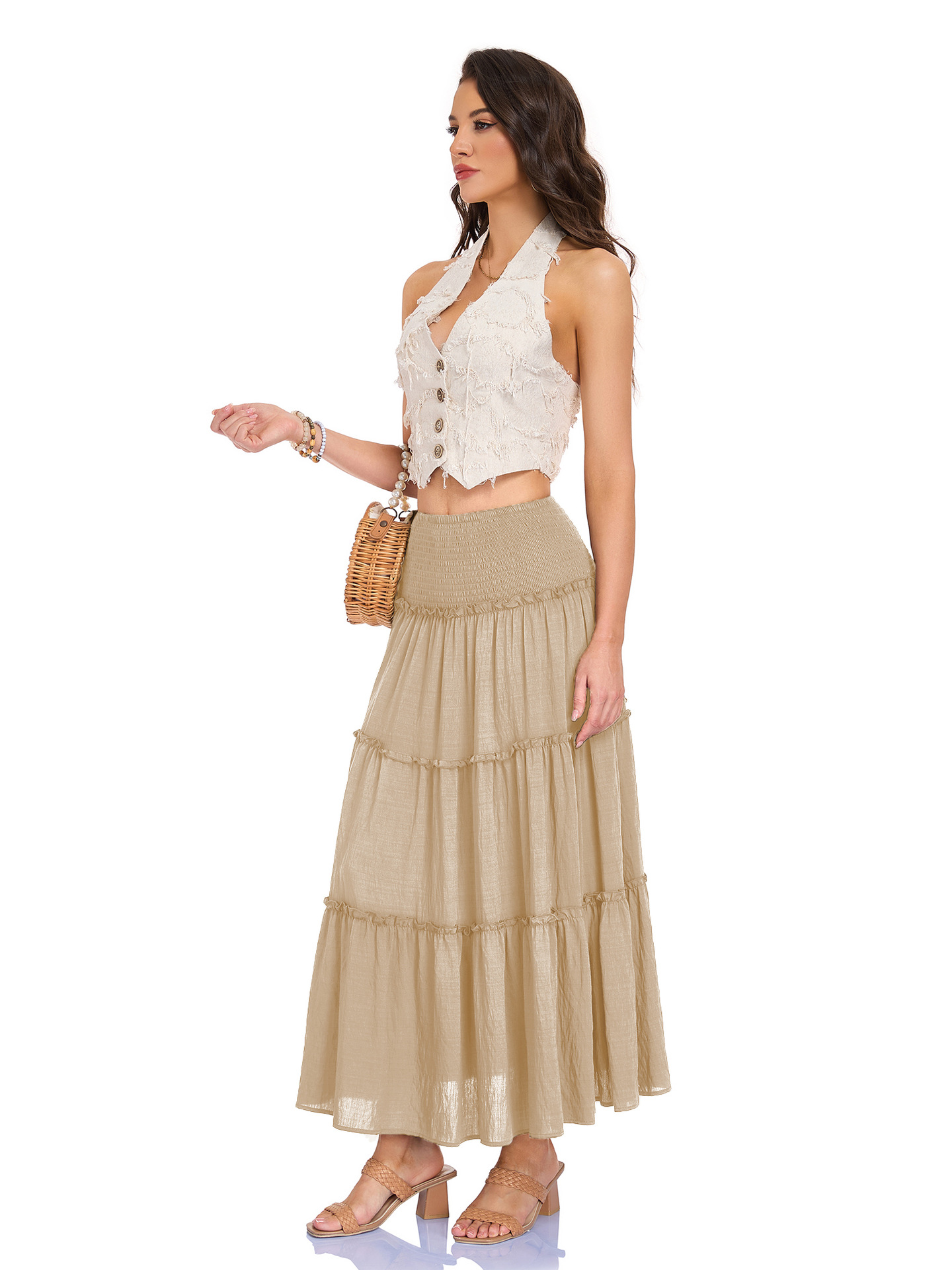 Three Tier Ruffled Cotton Linen Maxi Dress