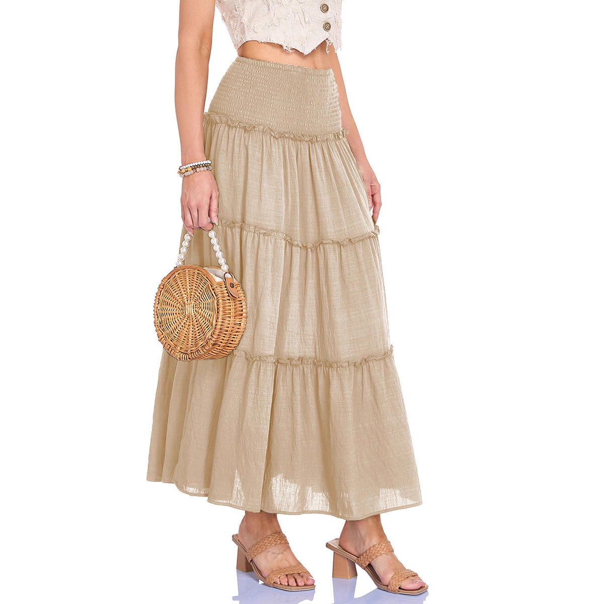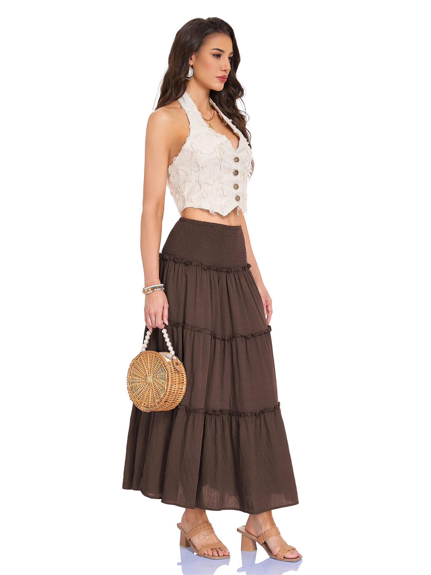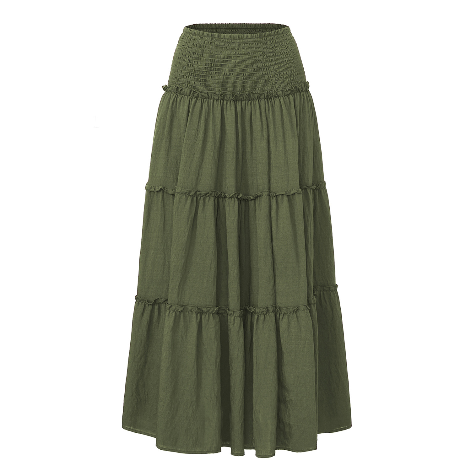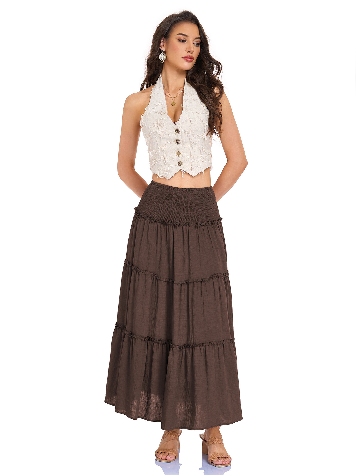 Three Tier Ruffled Cotton Linen Maxi Dress