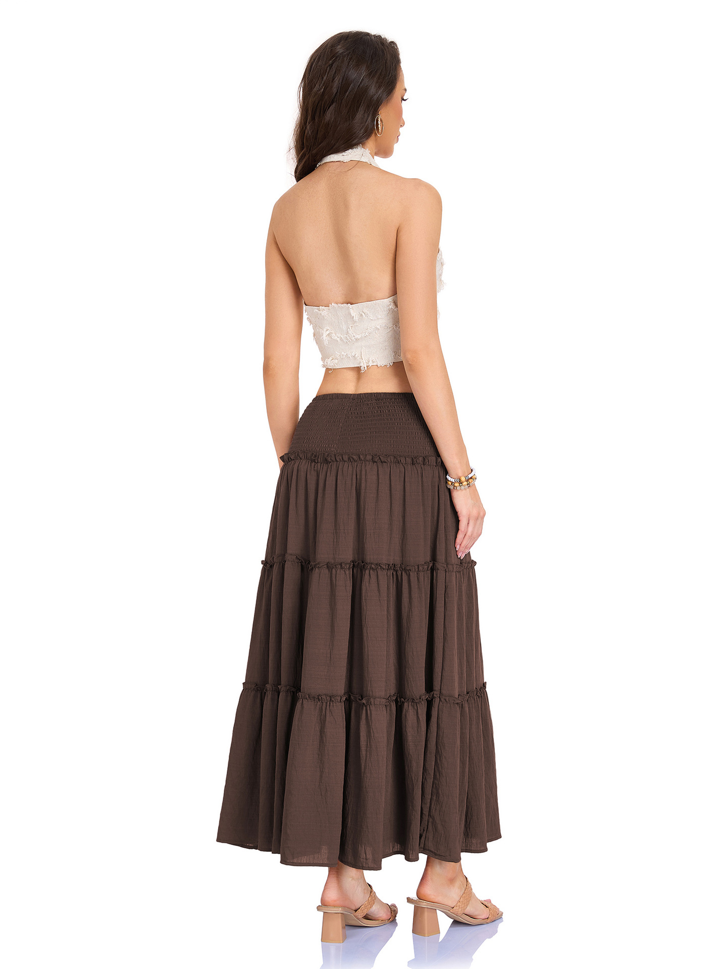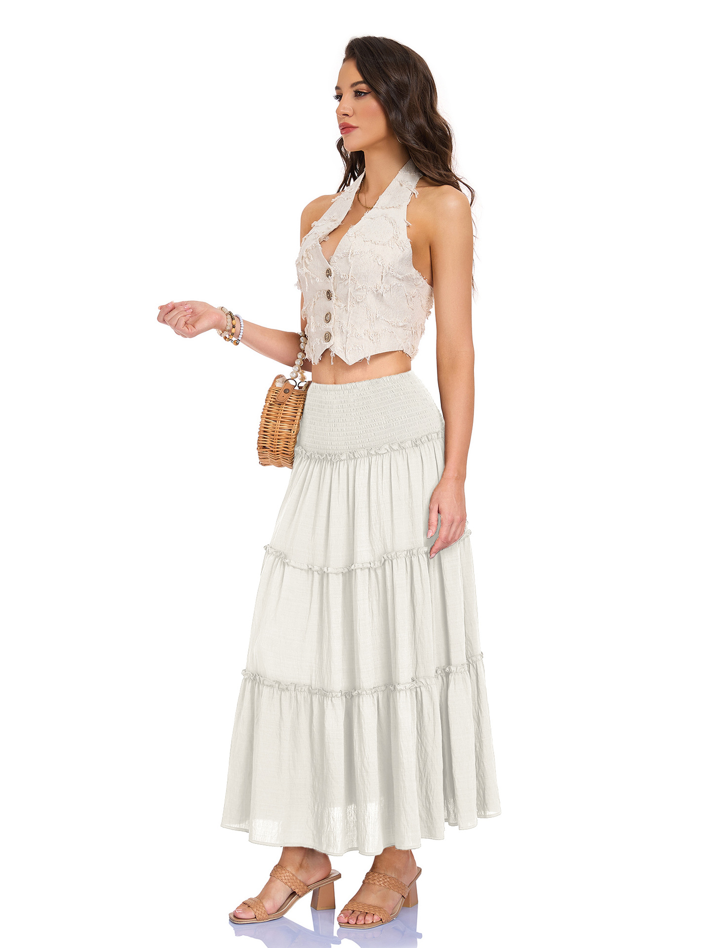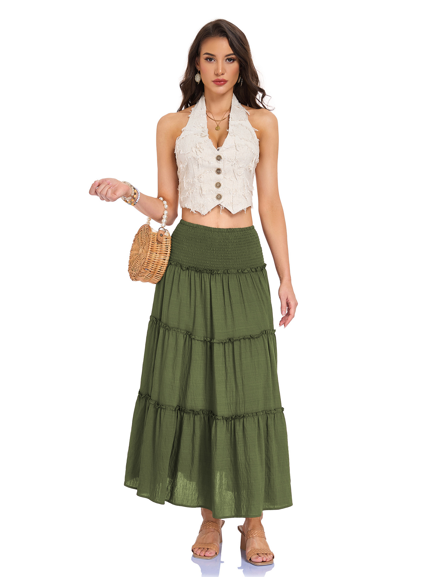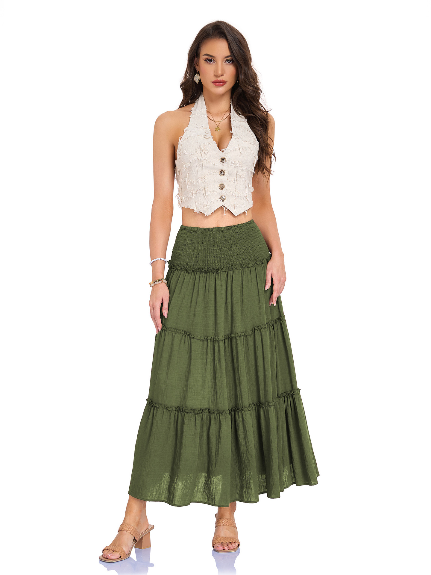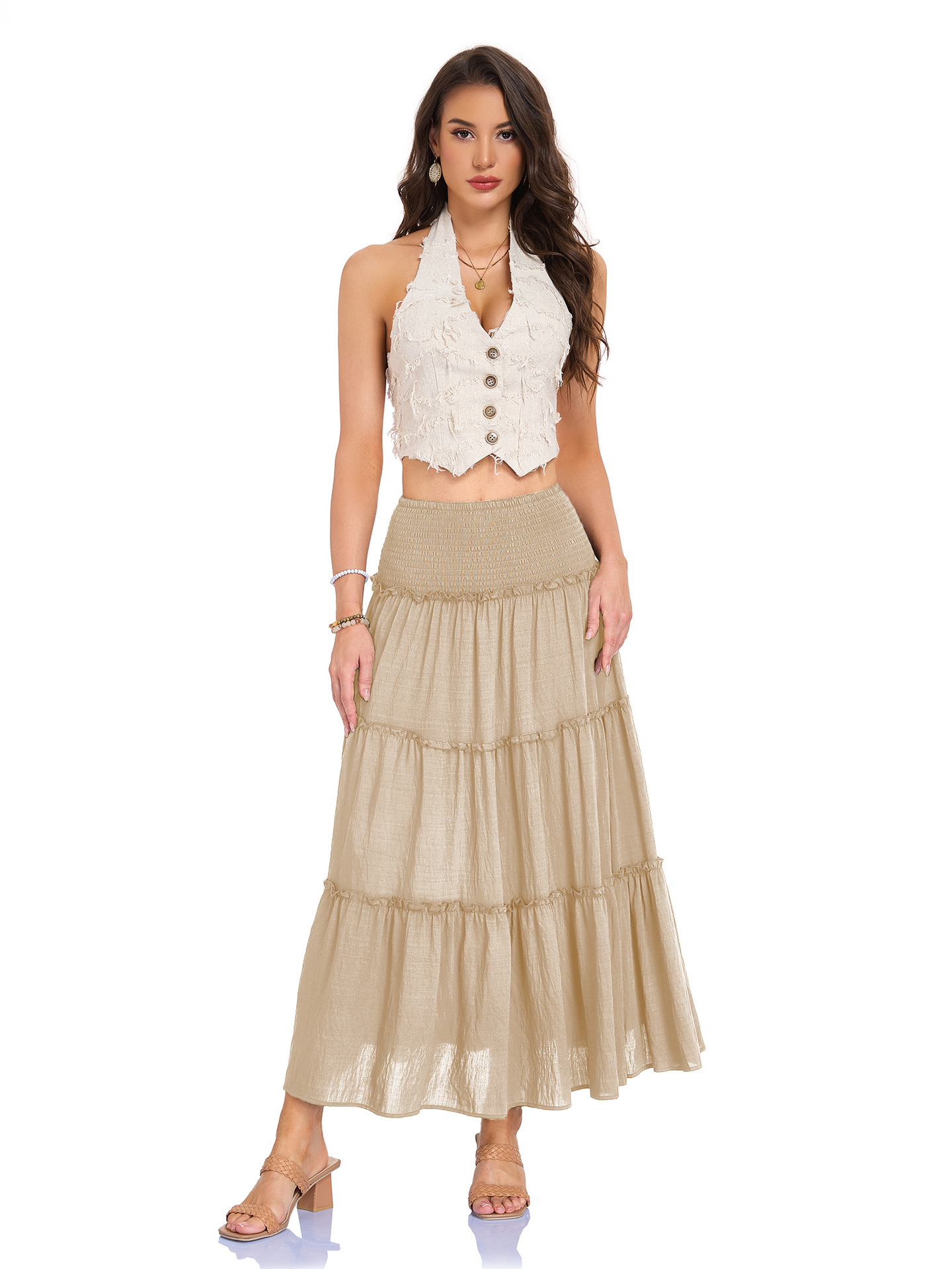 Three Tier Ruffled Cotton Linen Maxi Dress