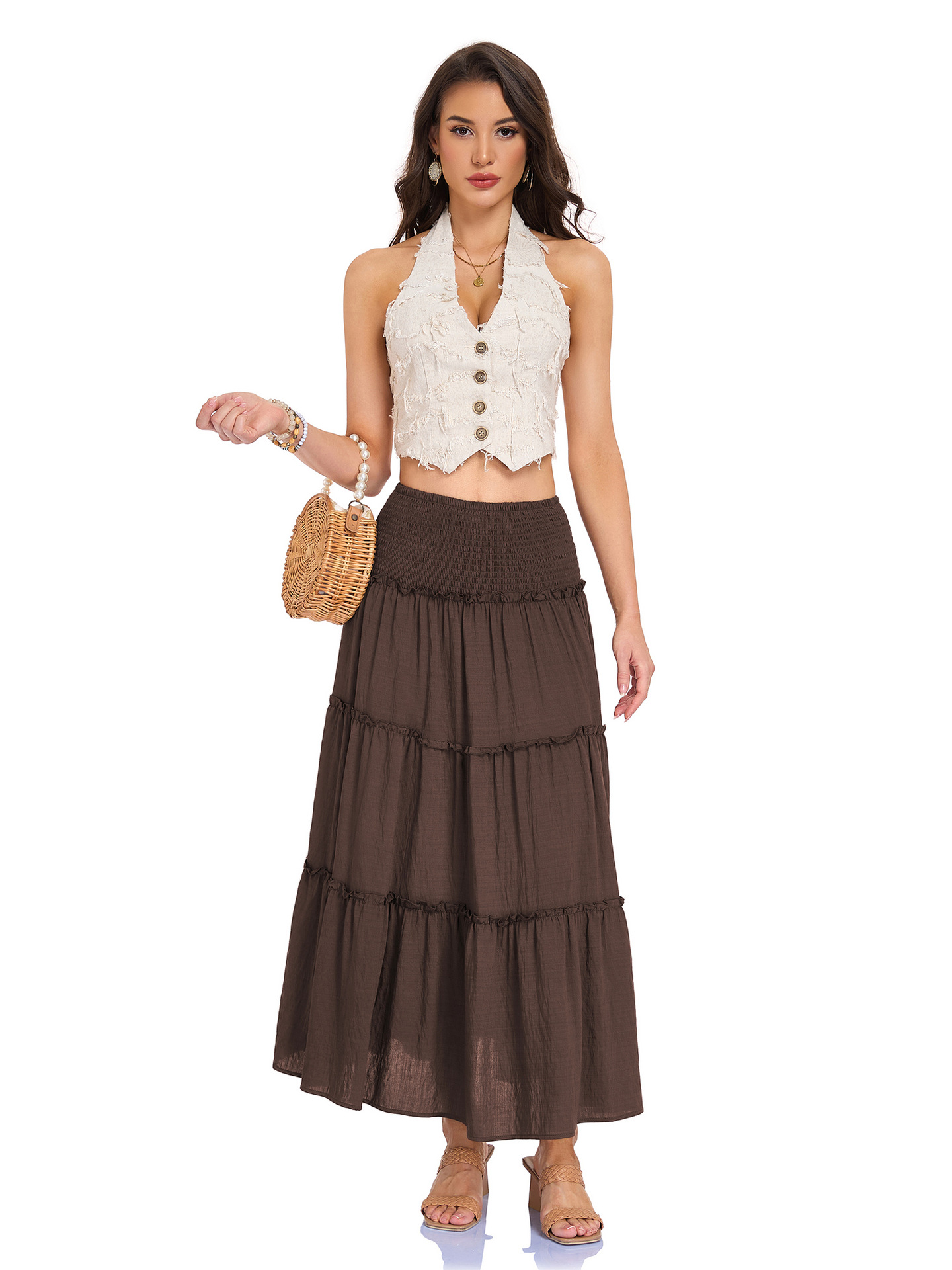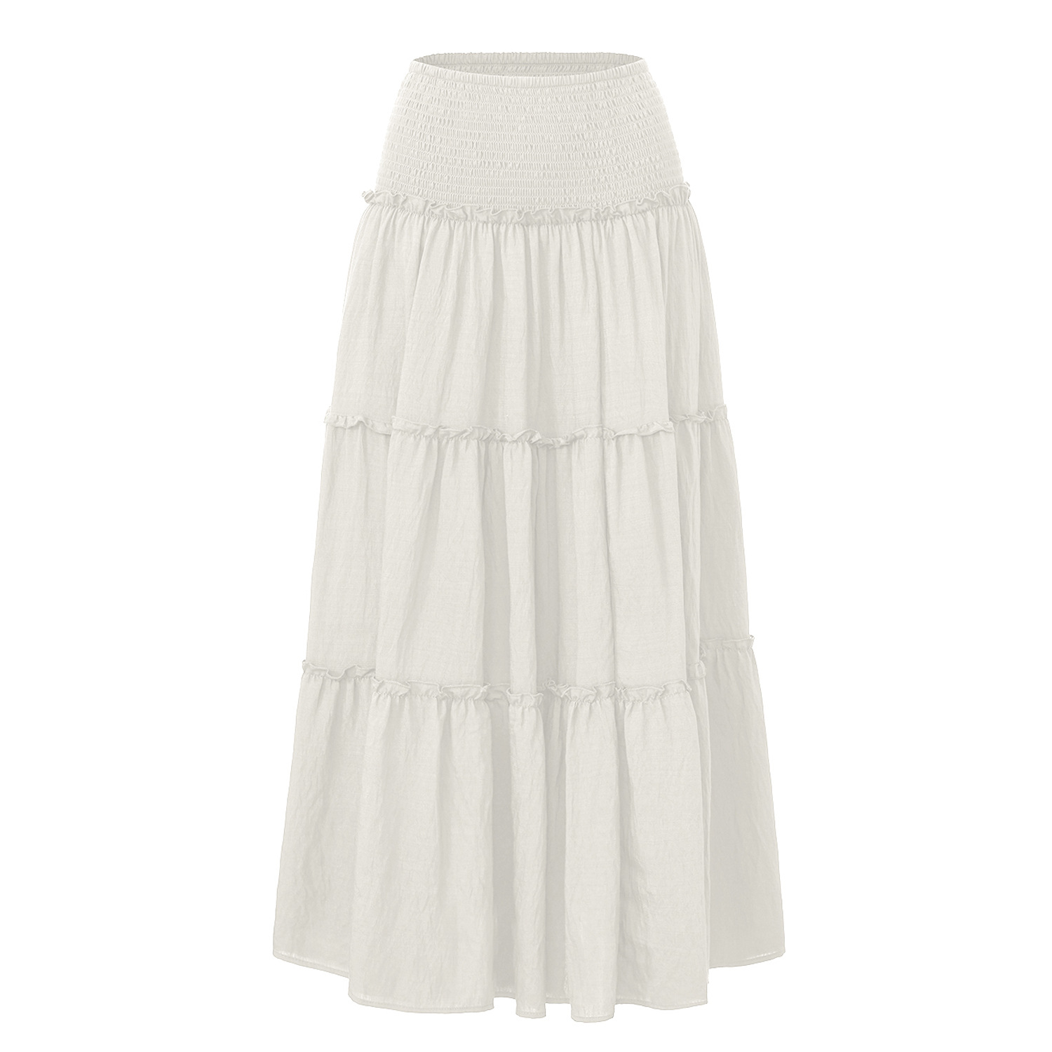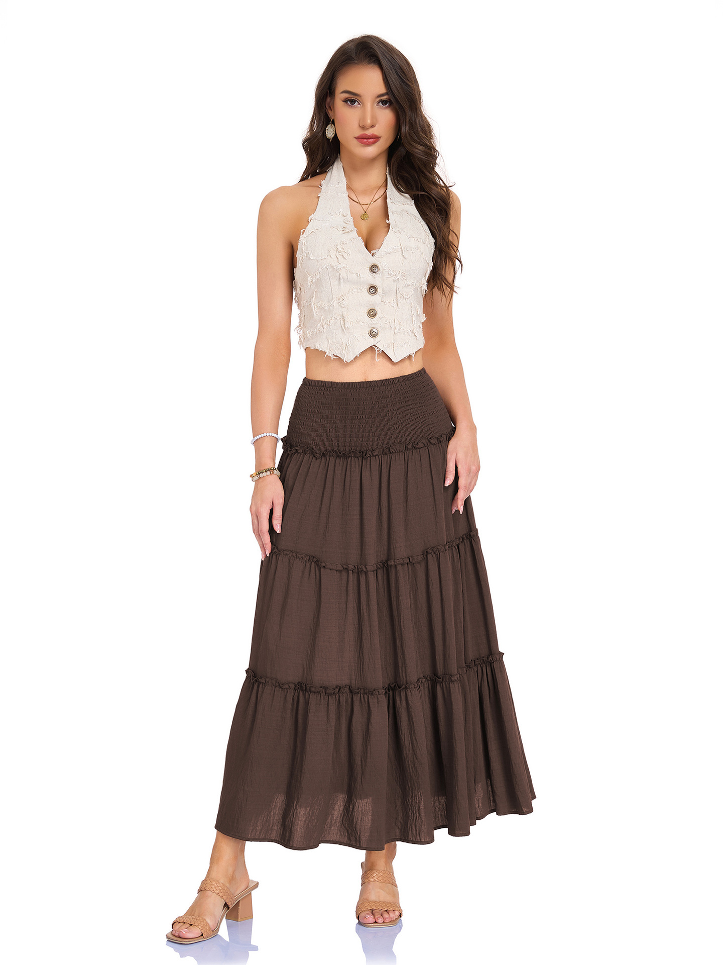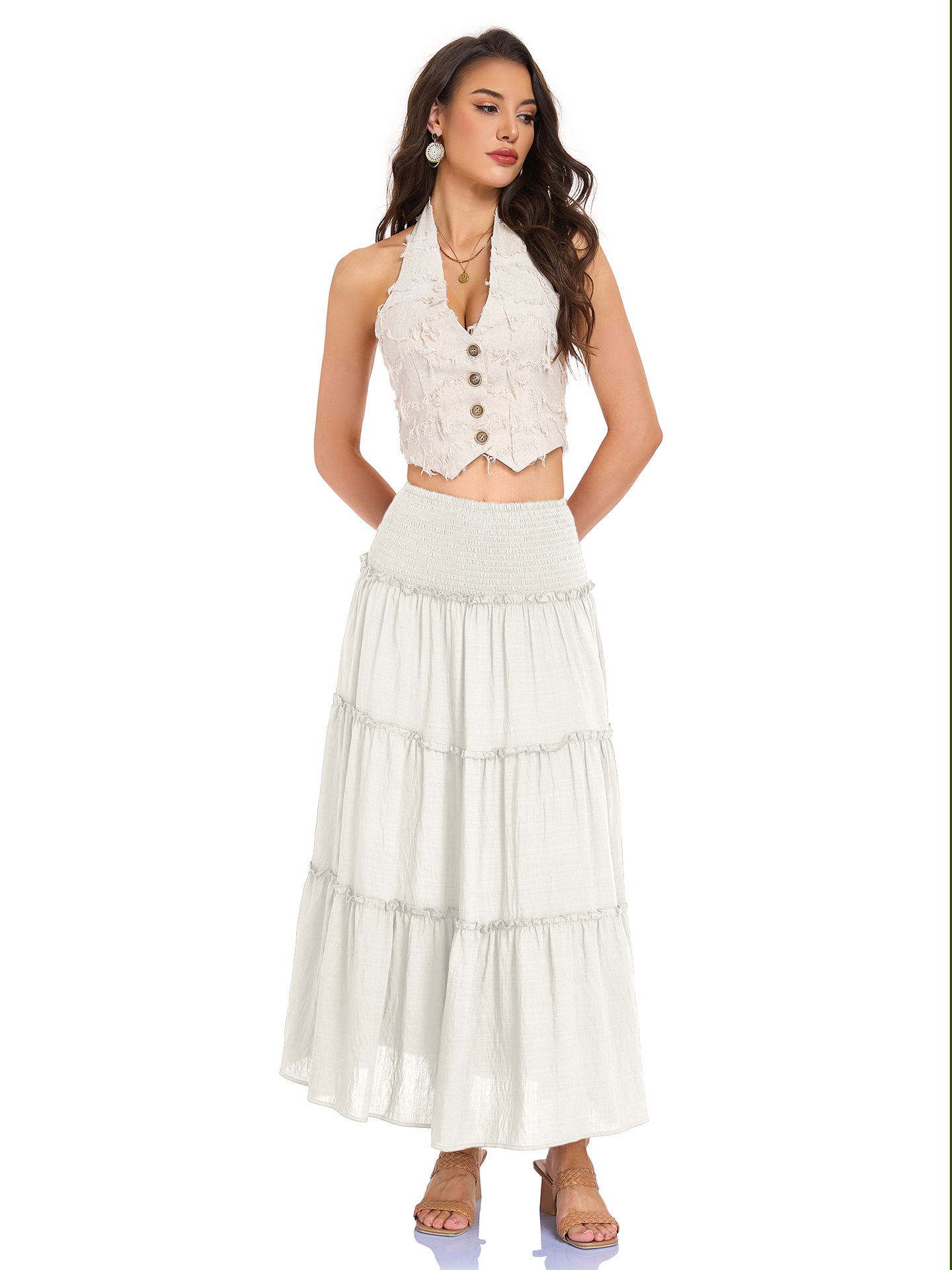 Three Tier Ruffled Cotton Linen Maxi Dress