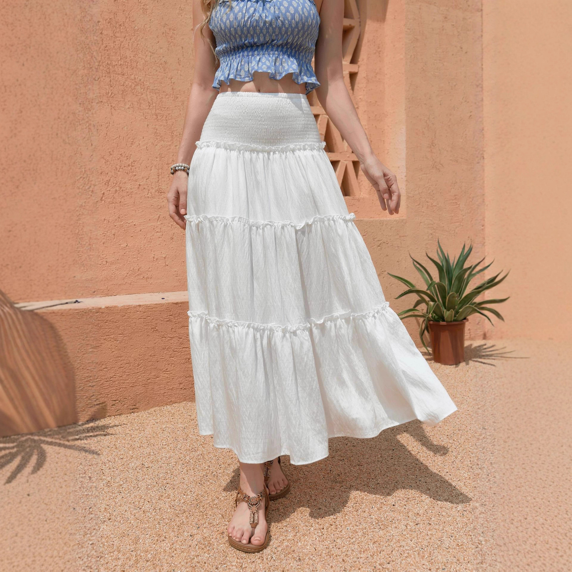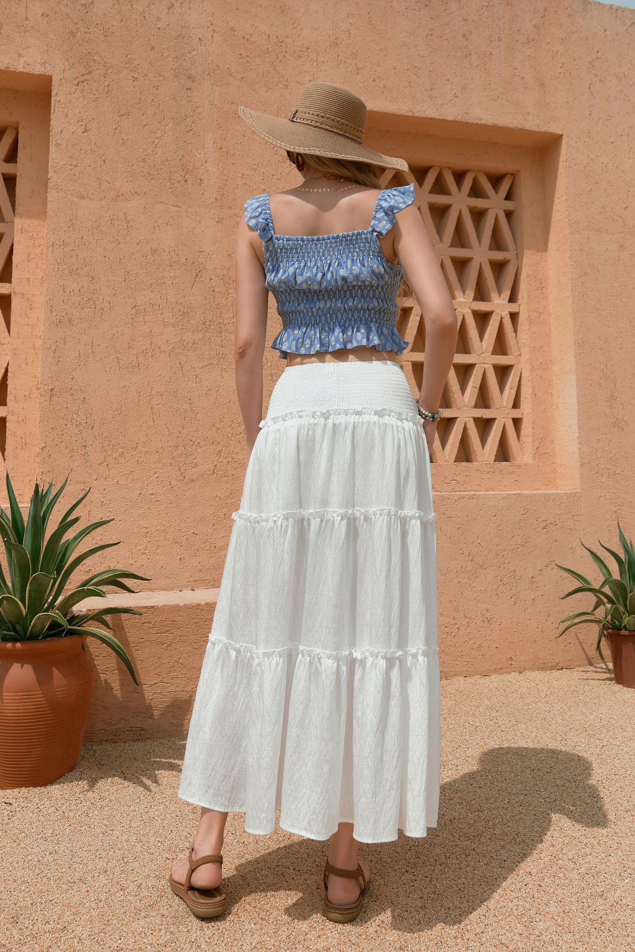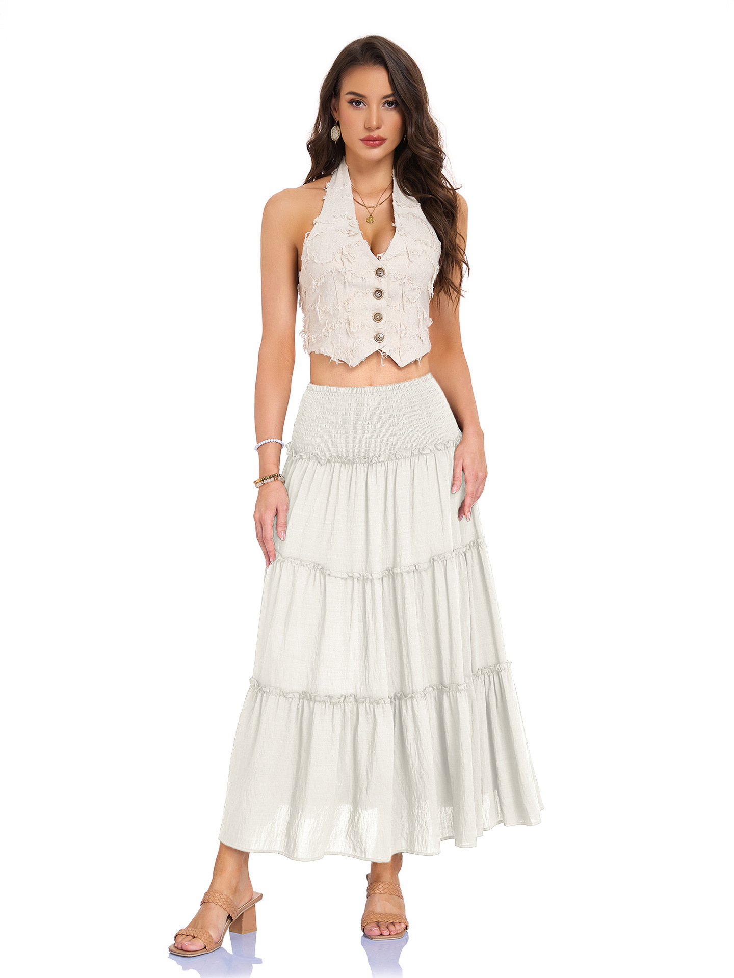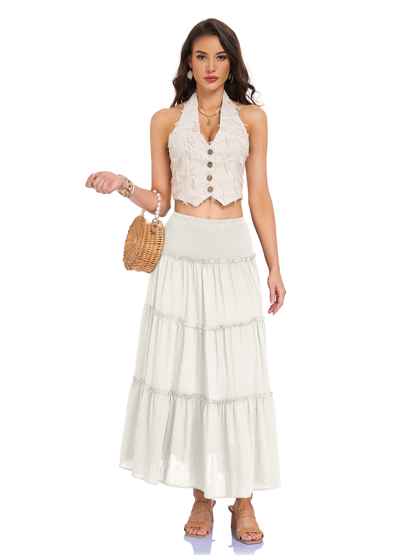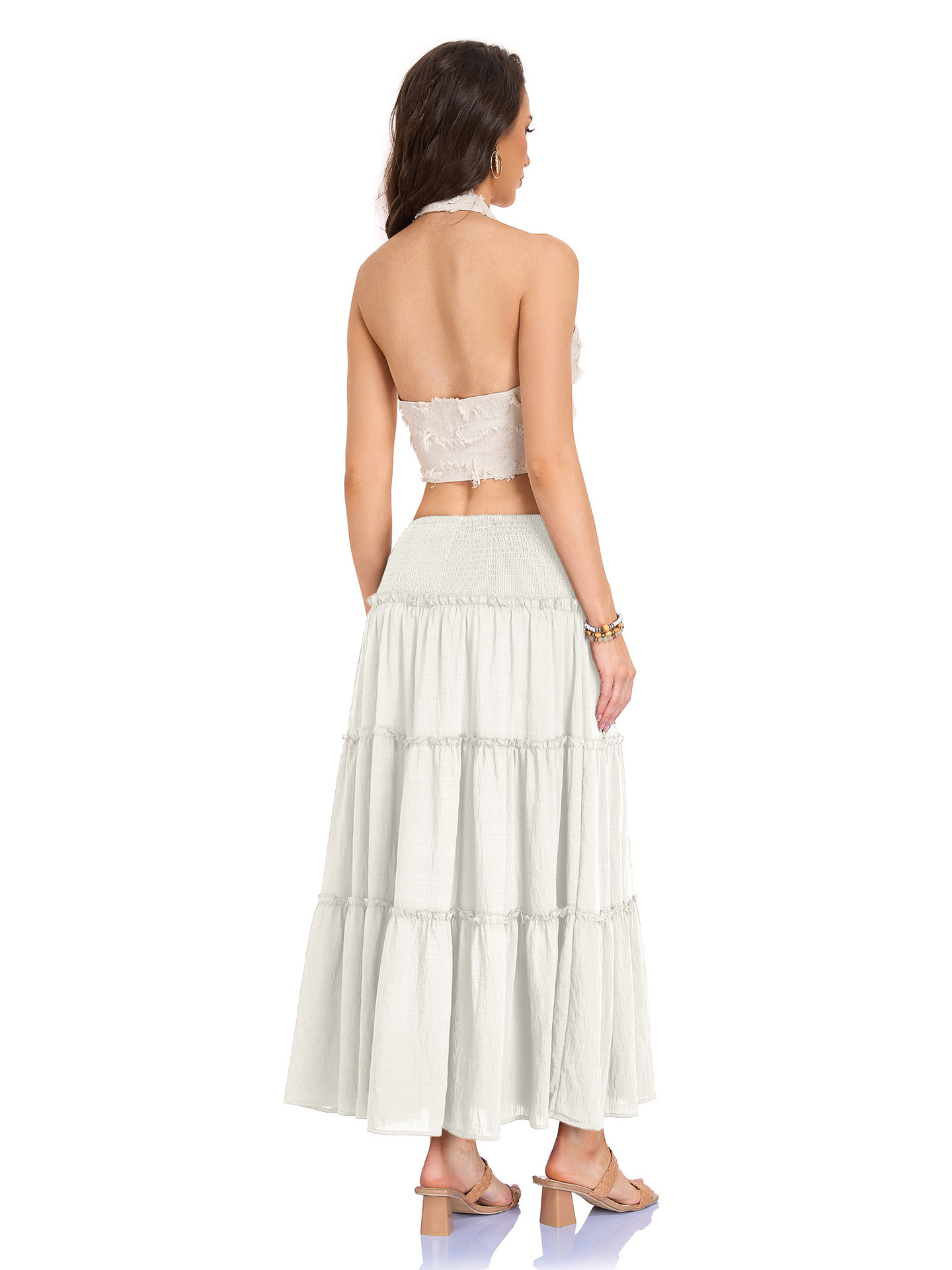 Three Tier Ruffled Cotton Linen Maxi Dress