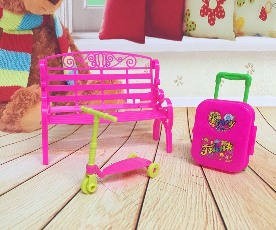 Color: red sofa, travel bag, scooter, square pull box, butterfly pull box