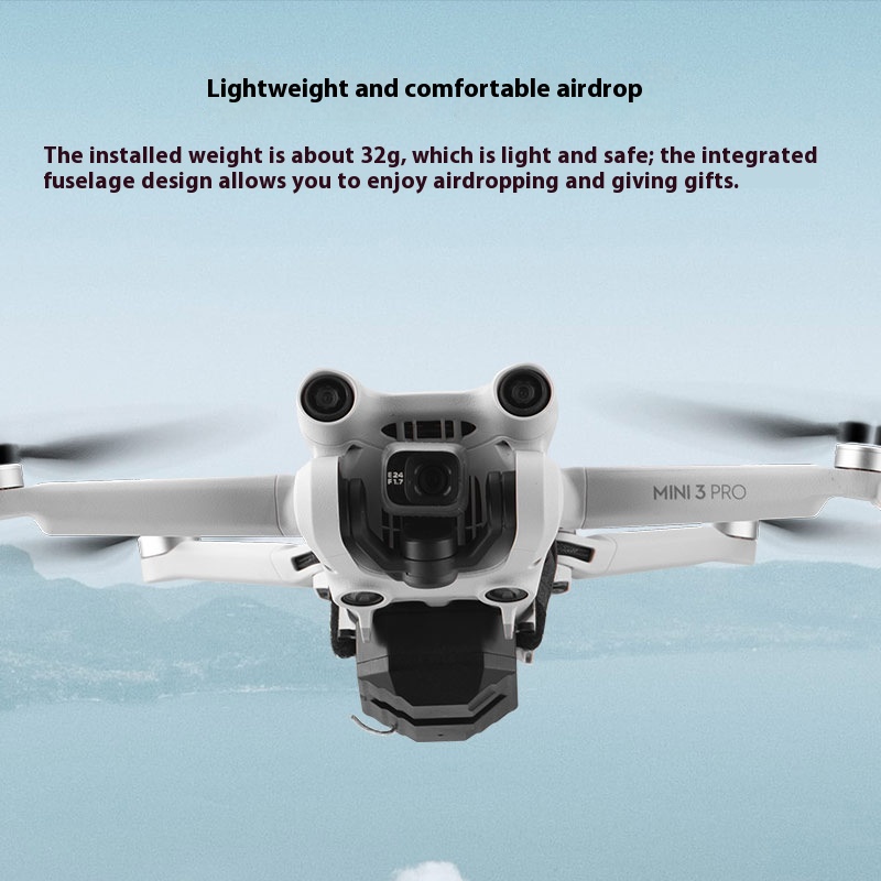 1. UAV thrower, which can be delivered remotely for advertising, throwing bait, throwing gifts, delivering meals, sending wedding rings, etc;