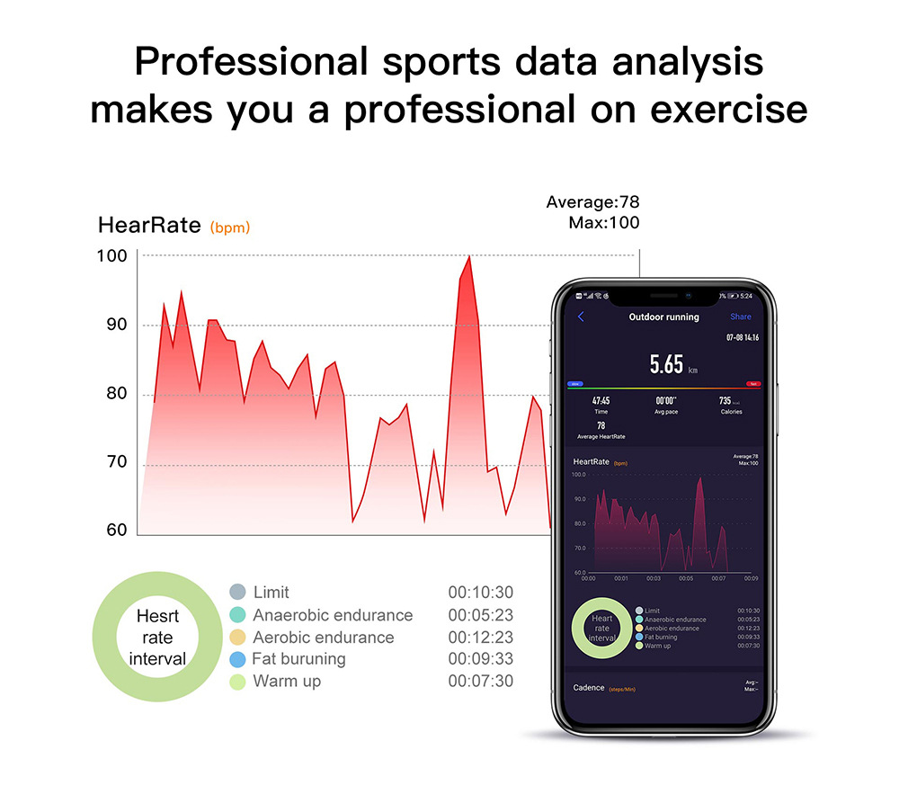 Additional features: step counting, monitoring, intelligent reminder, remote control selfie, health monitoring, information push, exercise tracking, sleep analysis