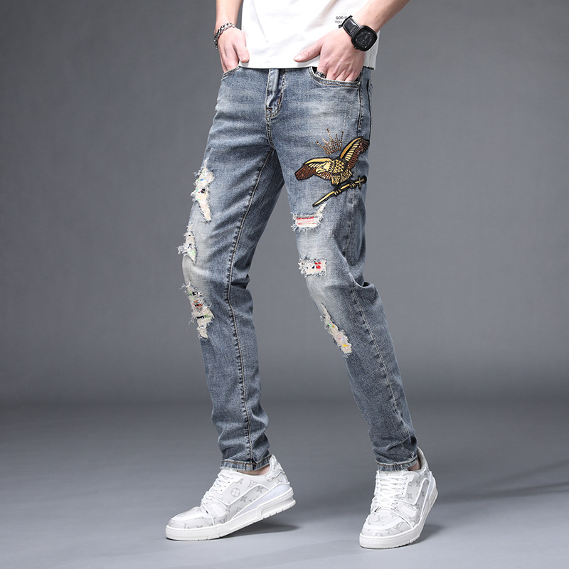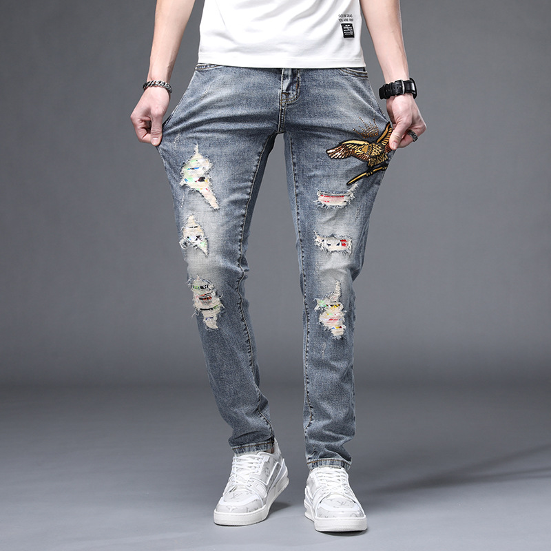 Special process: hand-painted, embroidered, sequins, embroidery, washed, worn, frayed, whitened, cat whiskers, printed, reflective