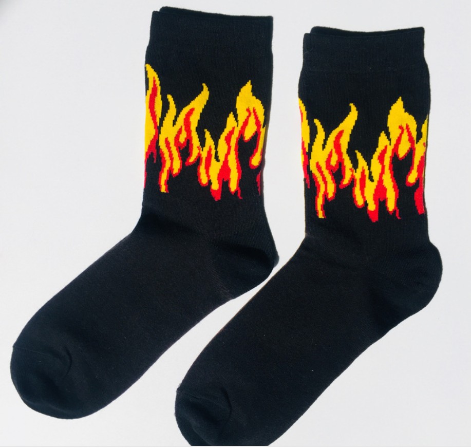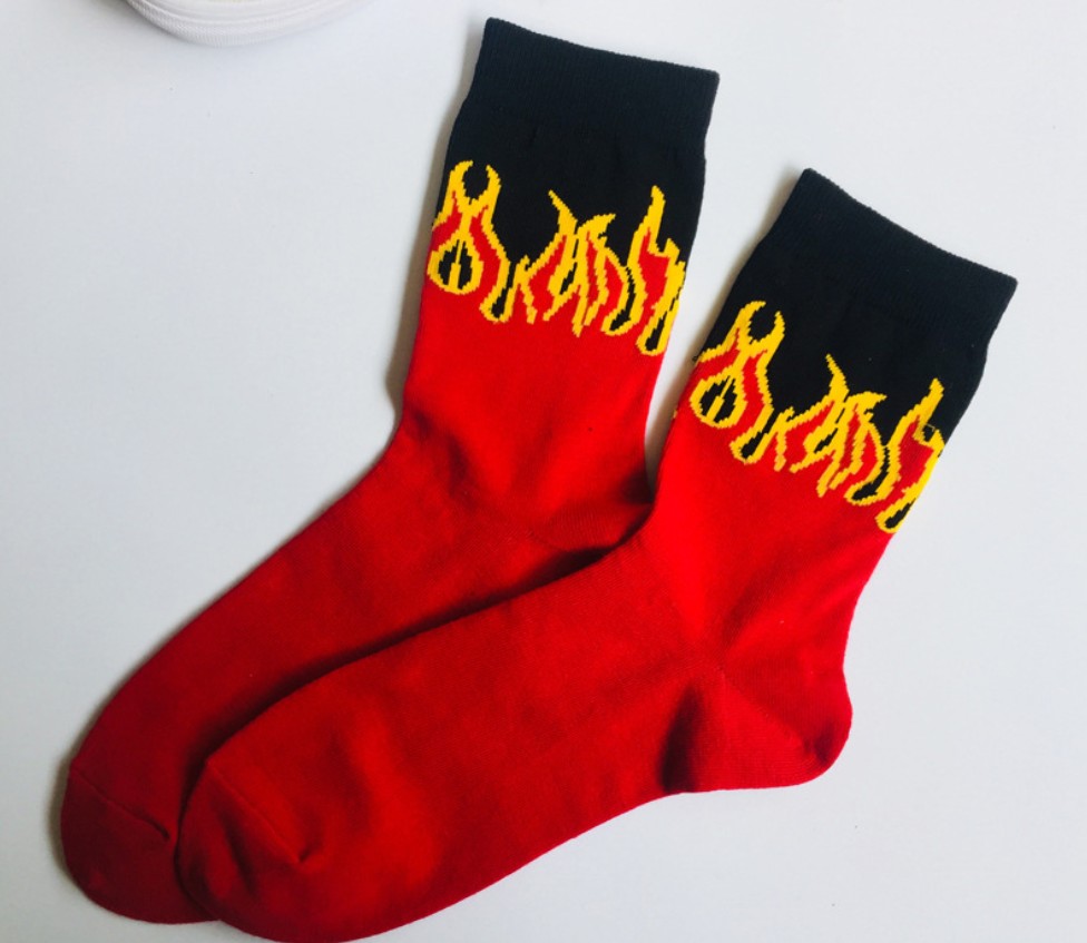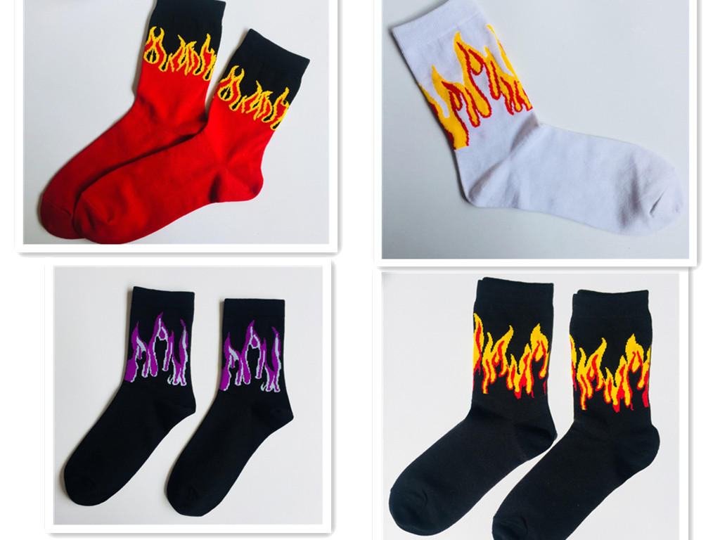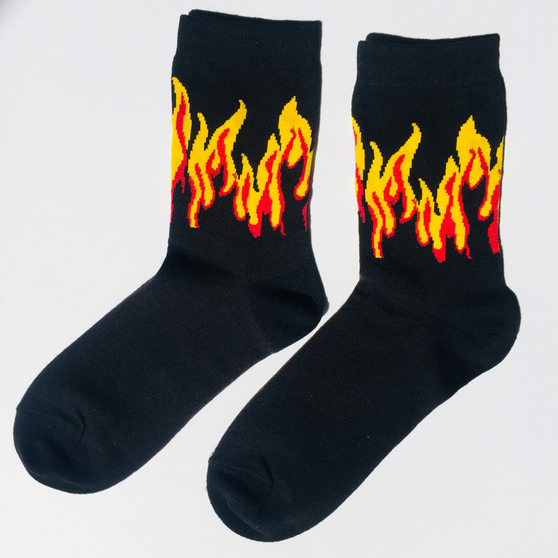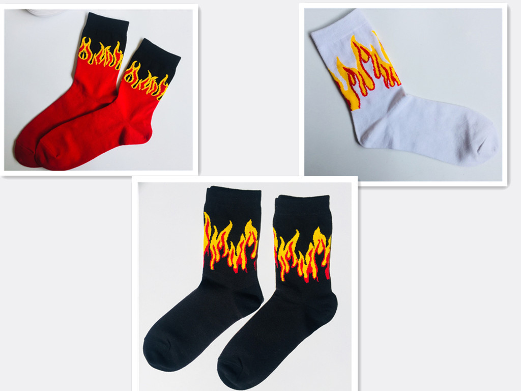 The sock is about 22cm high (socks to the heel) Sweat-absorbent and breathable, simple and comfortable, the overall workmanship is delicate Cotton soft and comfortable, three-color flame, stylish and simple It’s more cool, it’s a lot of time, a pair of nice socks. Is also a fun and energetic lifestyle Everyone needs a pair of wild socks