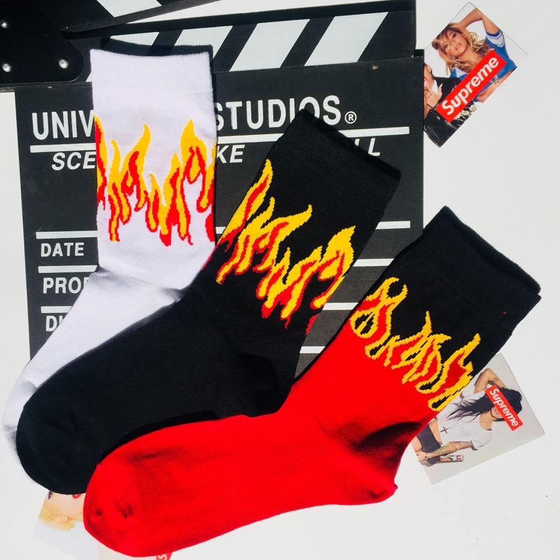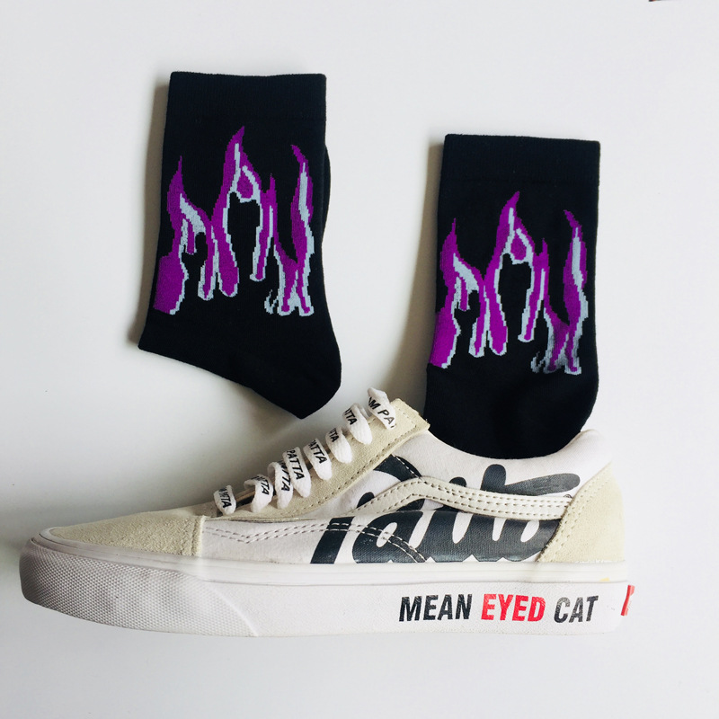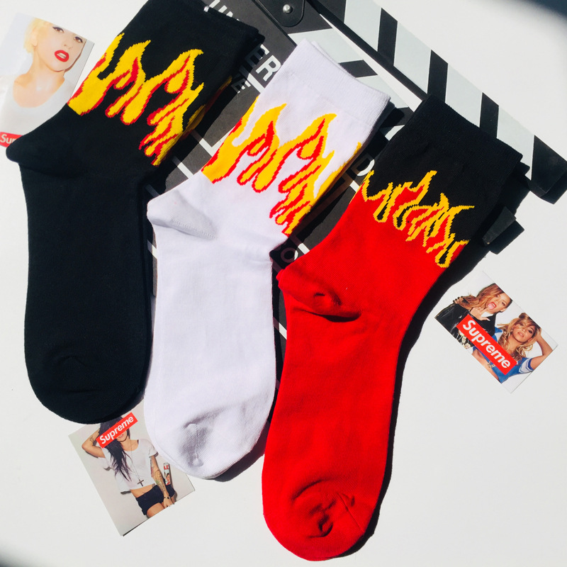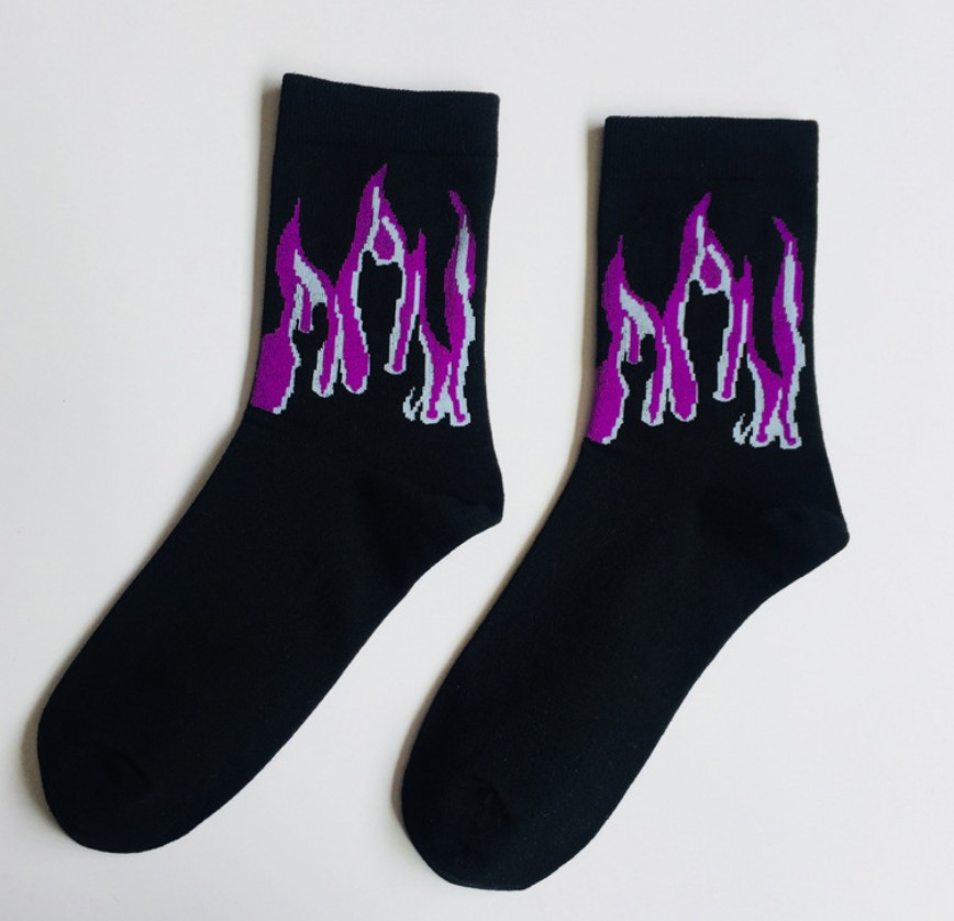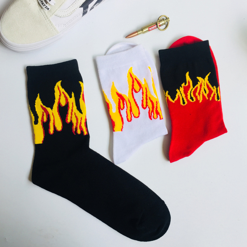 The sock is about 22cm high (socks to the heel) Sweat-absorbent and breathable, simple and comfortable, the overall workmanship is delicate Cotton soft and comfortable, three-color flame, stylish and simple It’s more cool, it’s a lot of time, a pair of nice socks. Is also a fun and energetic lifestyle Everyone needs a pair of wild socks