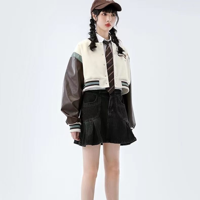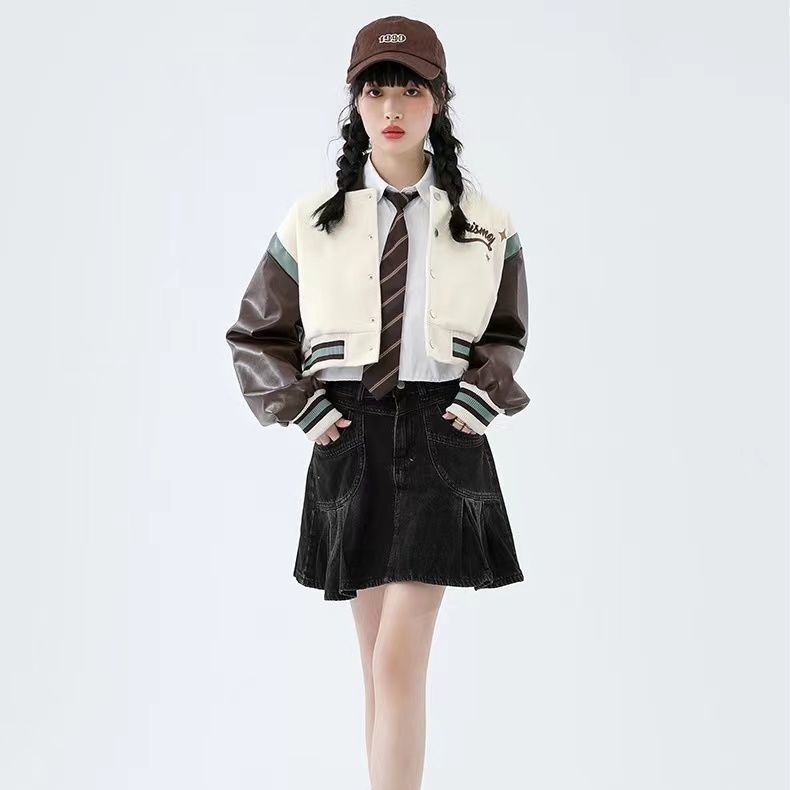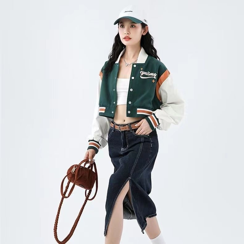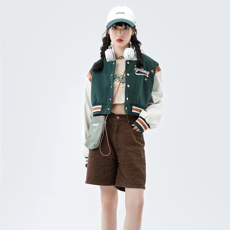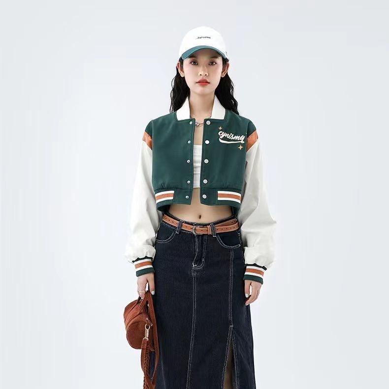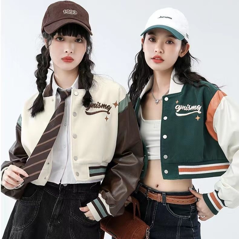 Tide Brand Retro American Rose Letter Embroidery Short Coat