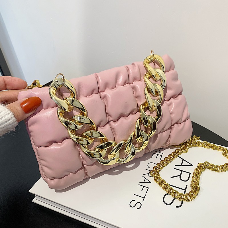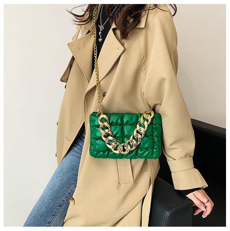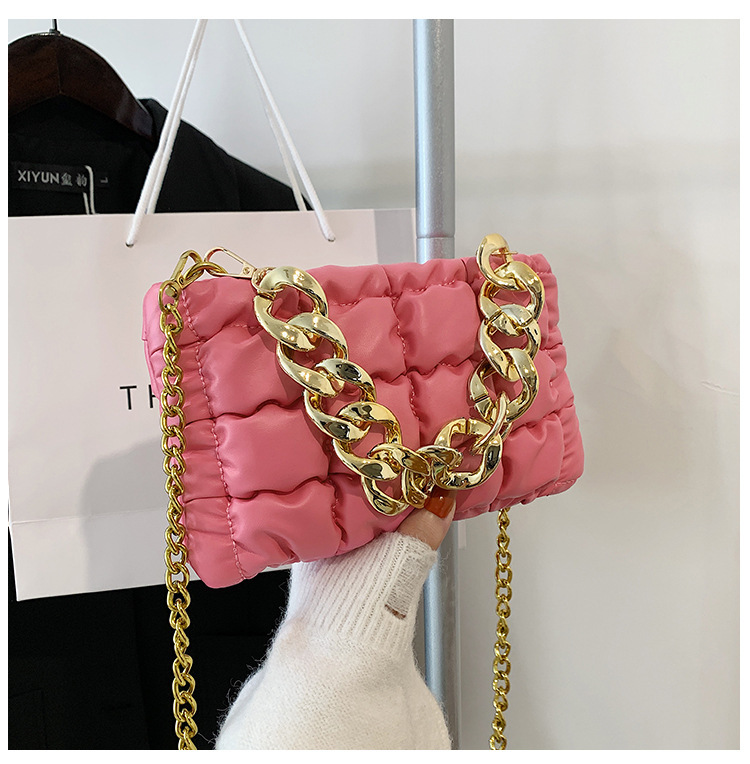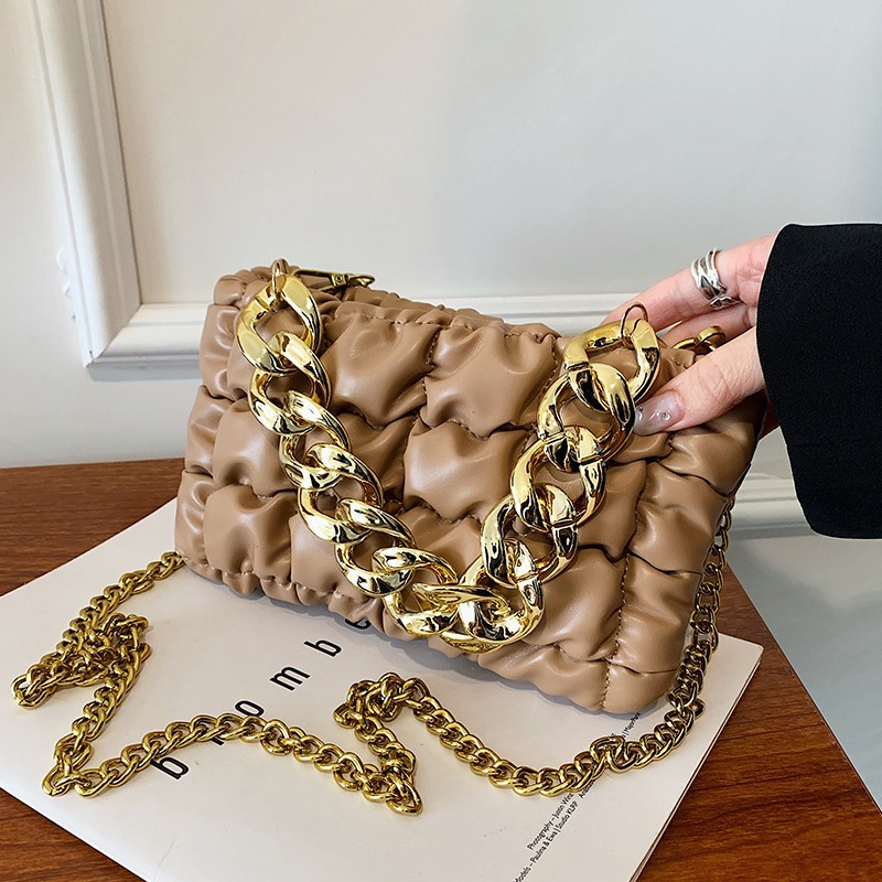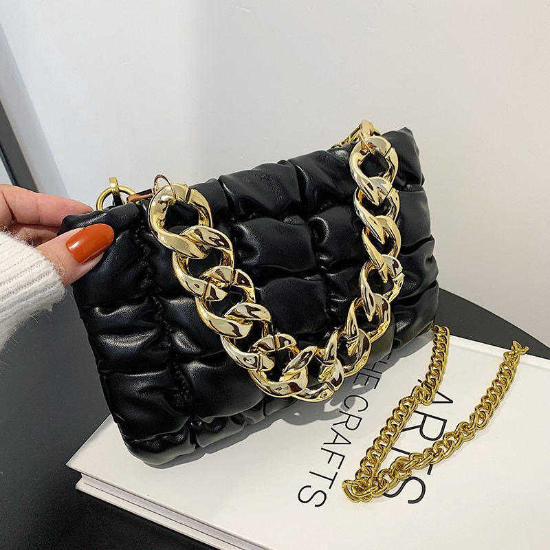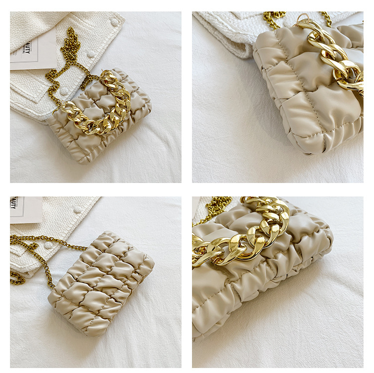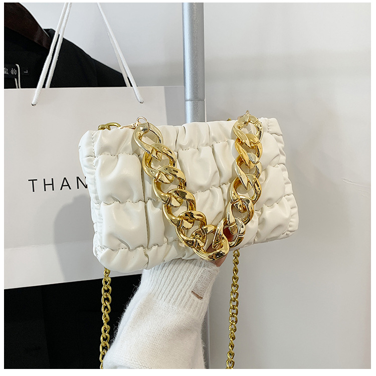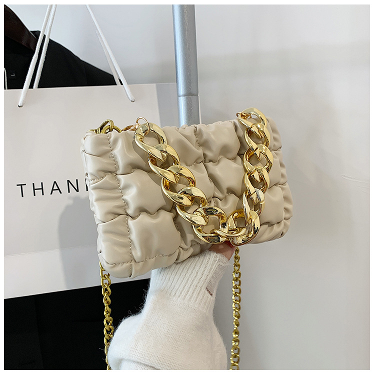 Tide Folds Embroidered Thread Thick Chain Check Fashion One-shoulder Messenger Bag