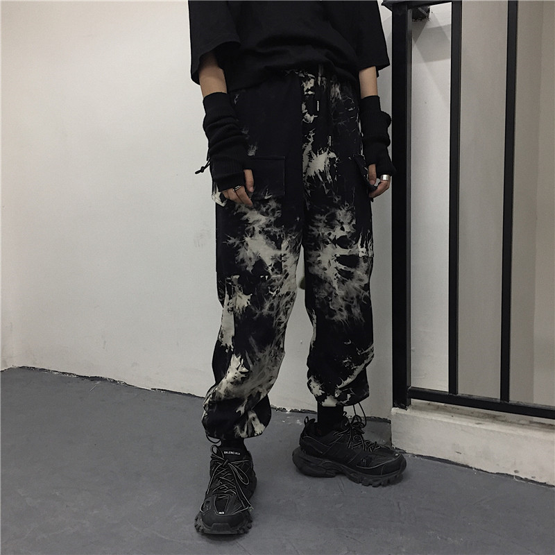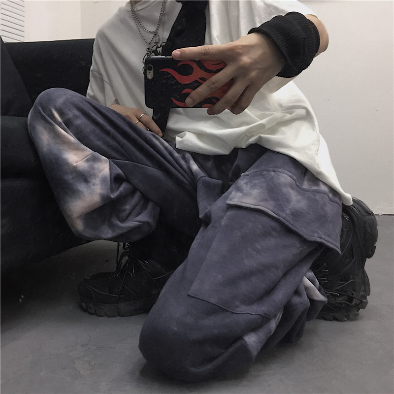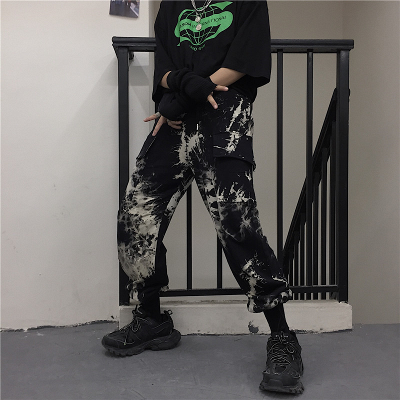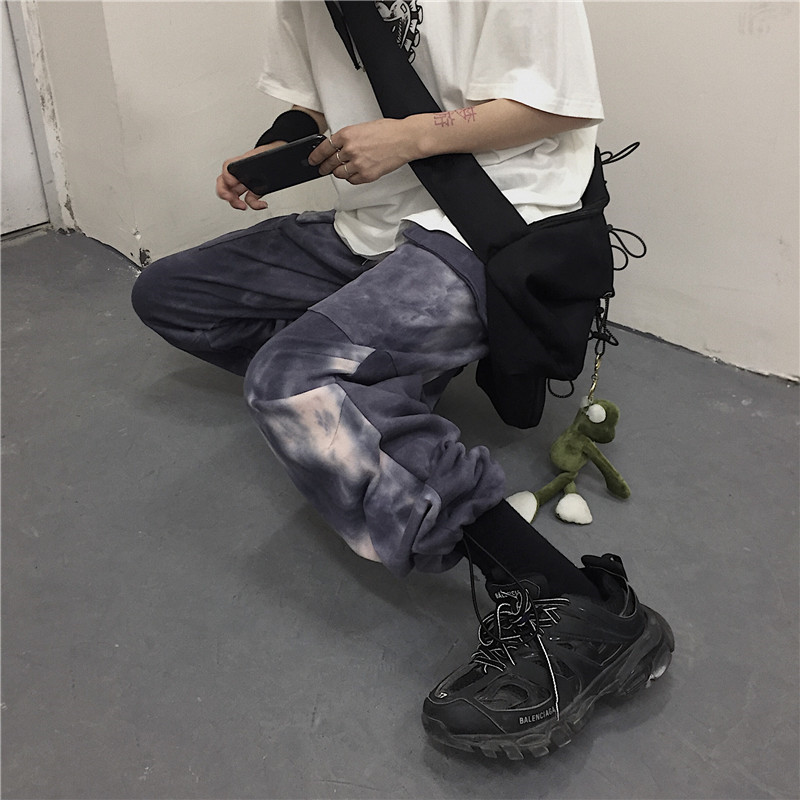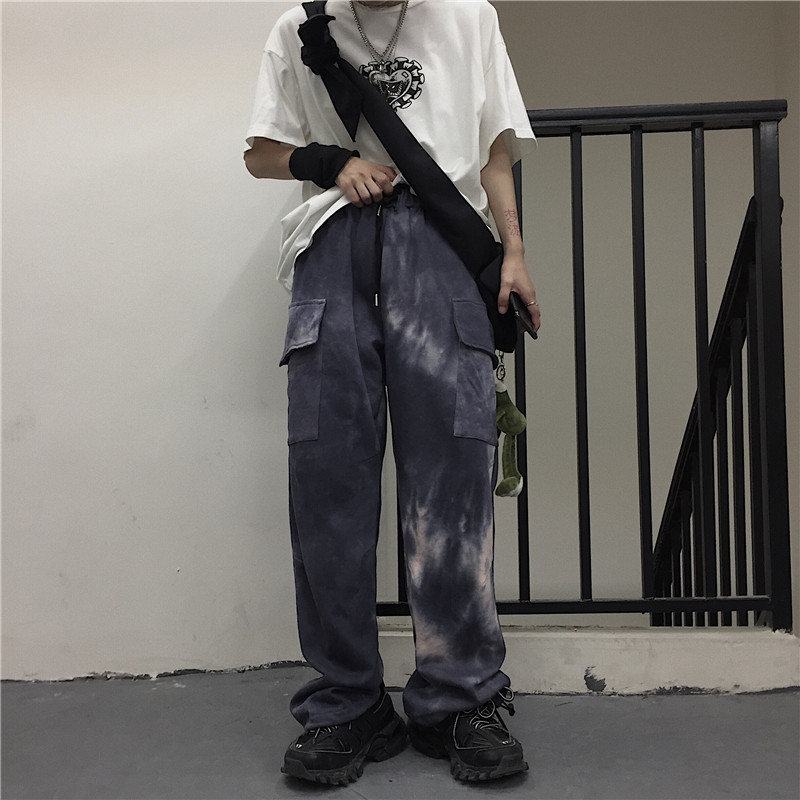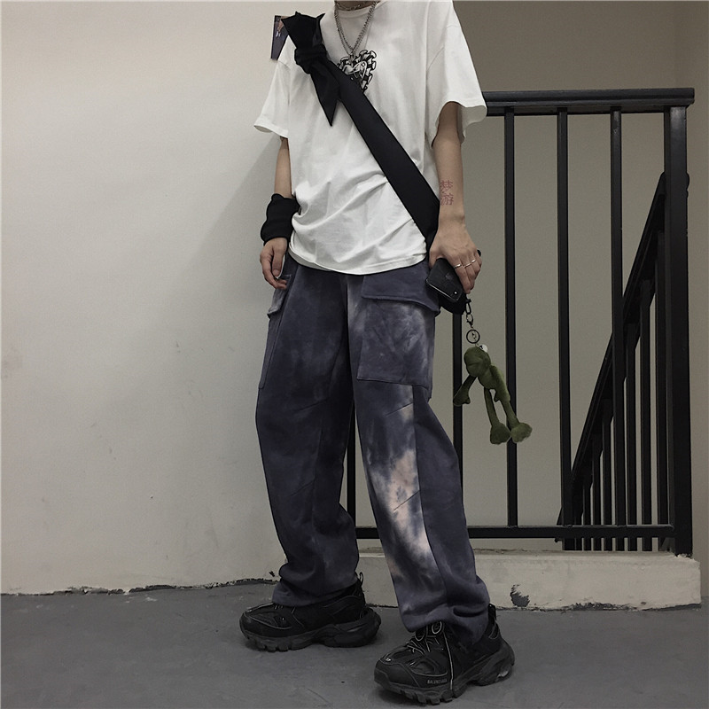 Tie-dye beam-leg loose slacks