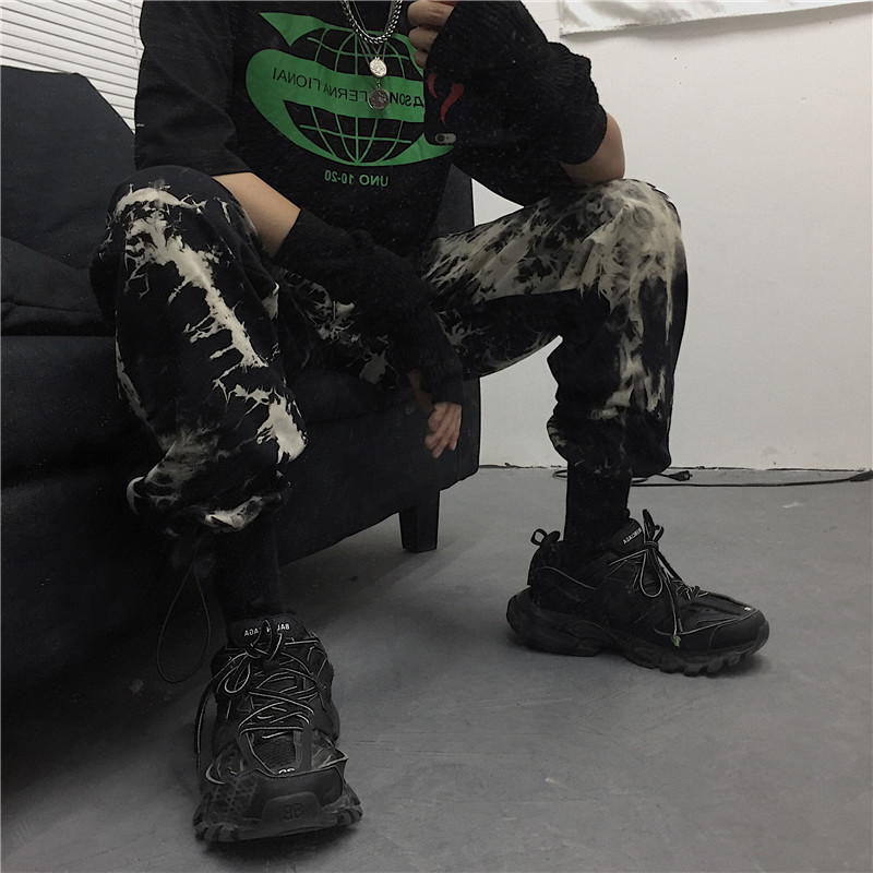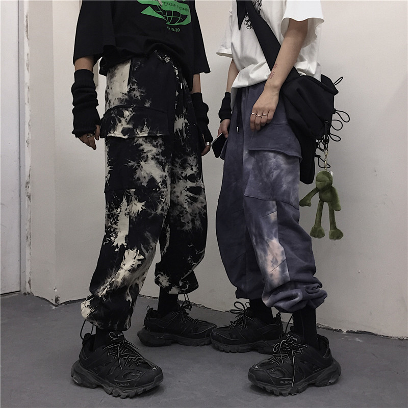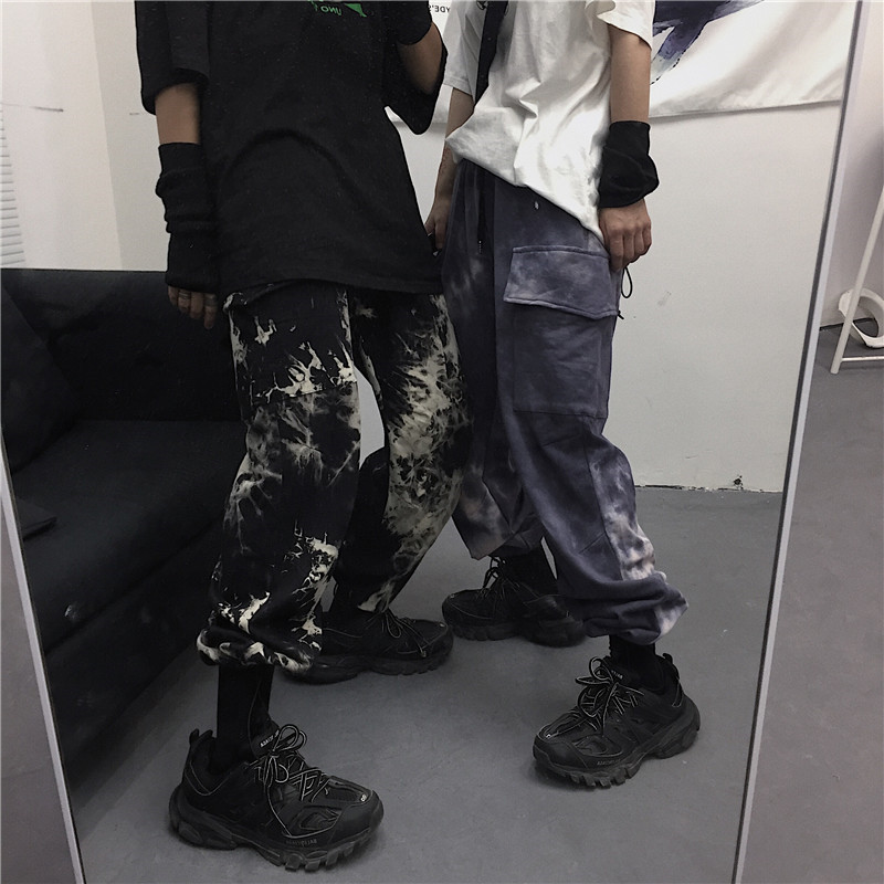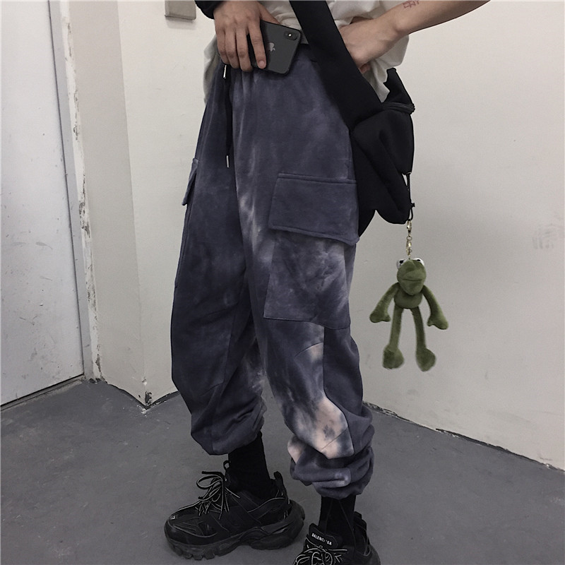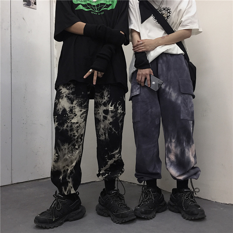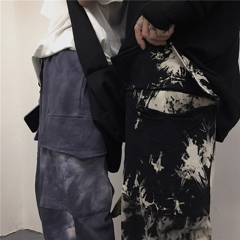 Tie-dye beam-leg loose slacks