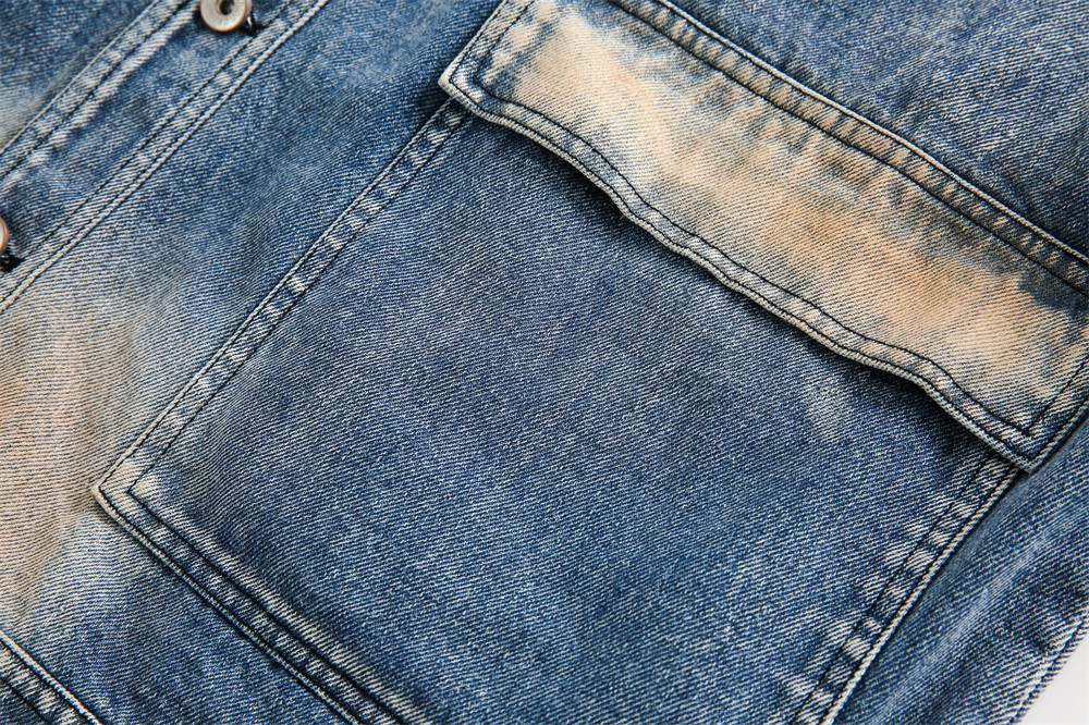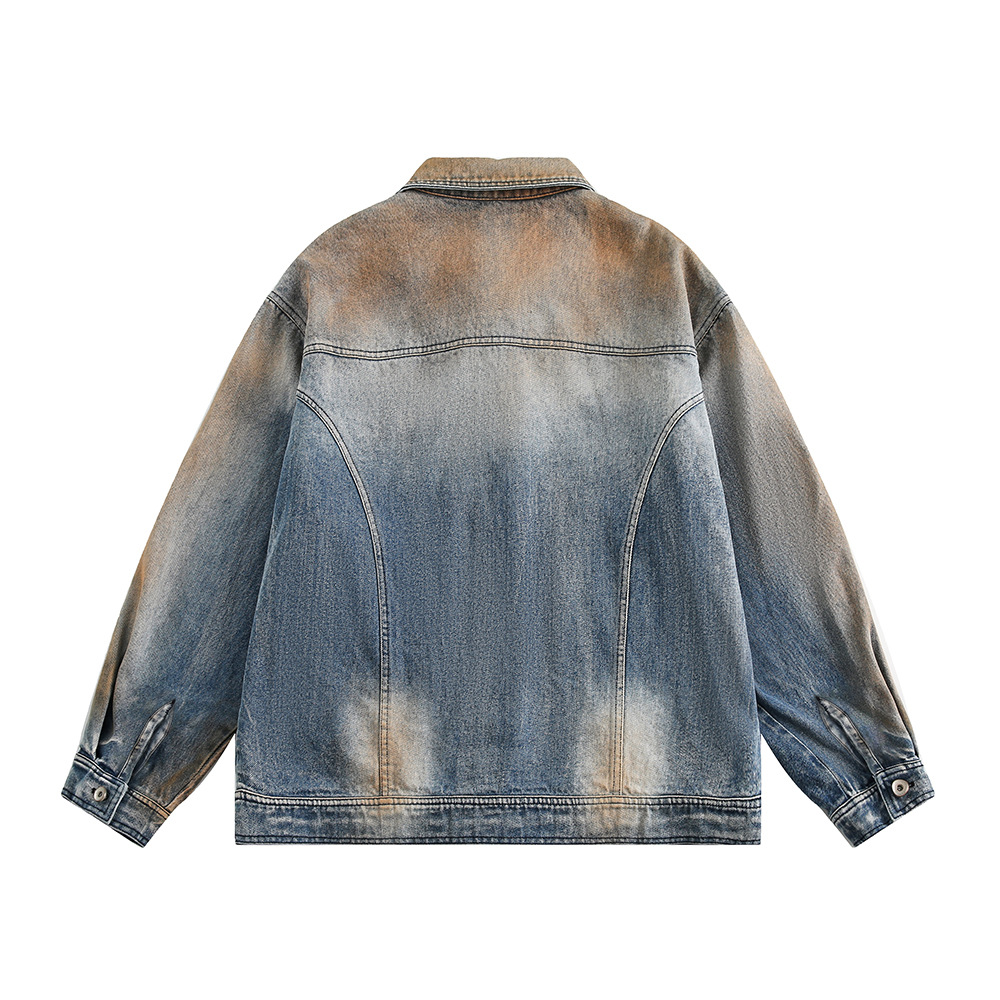 Tie-dye Gradient Denim Coat Men's Waste Soil Wind Cargo Pocket Loose