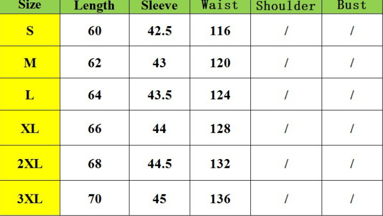 Size:S,M,L,XL,2XL,3XL unit:cm