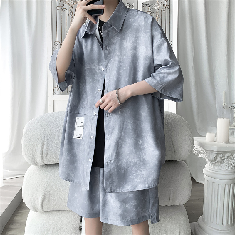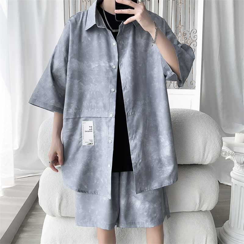 Tie Dye Loose Outfit Summer Short Sleeve Shirt Shorts Plus Size Two-piece Suit