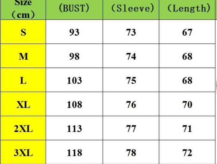 Size:S,M,L,XL,XXL,XXXL unit:cm