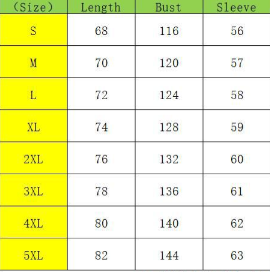 Size: S, M, L, XL, 2XL, 3XL, 4XL, 5XL unit: cm