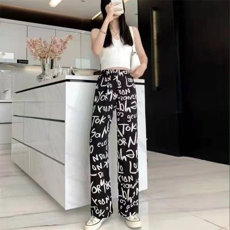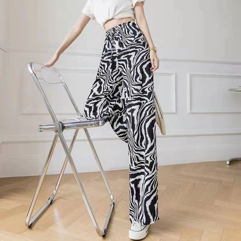 Tie-dyed Ice Silk Ink Painting Wide-leg Pants For Women Summer