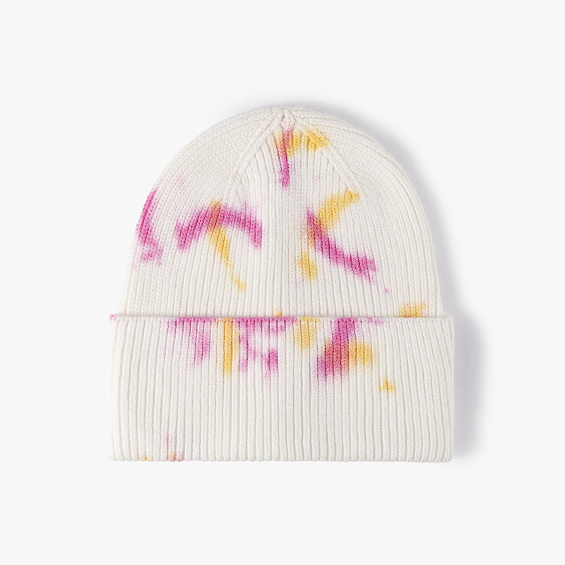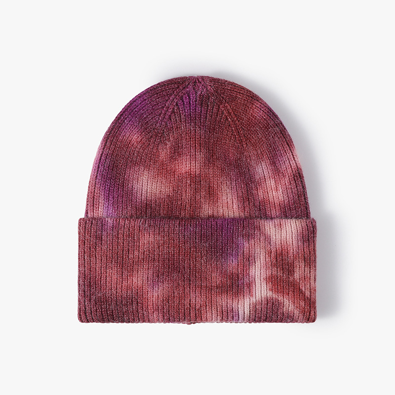 Tie-dyed Knitted Hat Ladies Outdoor Warm Core-spun Yarn Curled Edge Wool