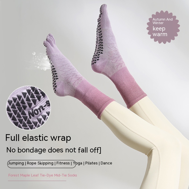 Tie-dyed Mid-calf Yoga Socks For Autumn And Winter Non-slip