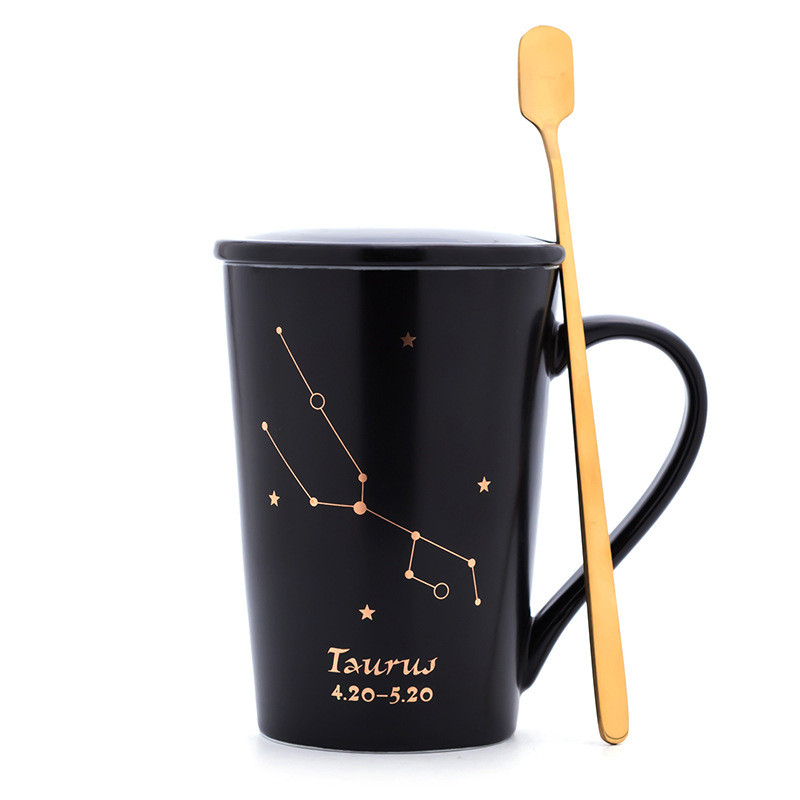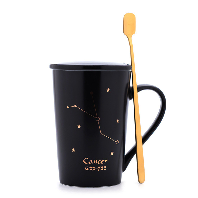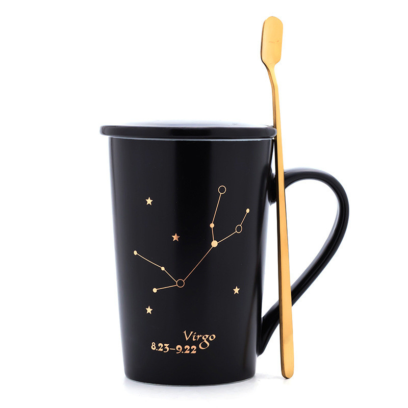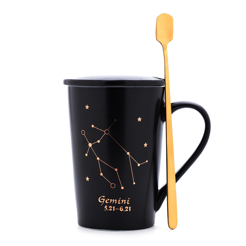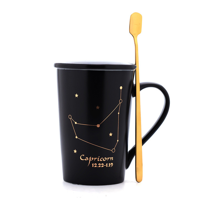 Creativity 12 Constellations Mugs Ceramic Porcelain Coffee Mug Drinkware With Spoon Lid Zodiac Milk Breakfast Coffee Cup NEW HOT