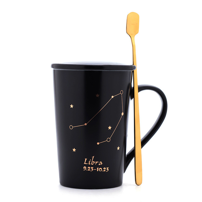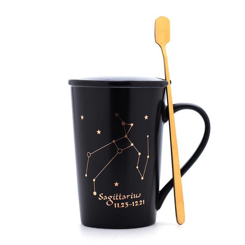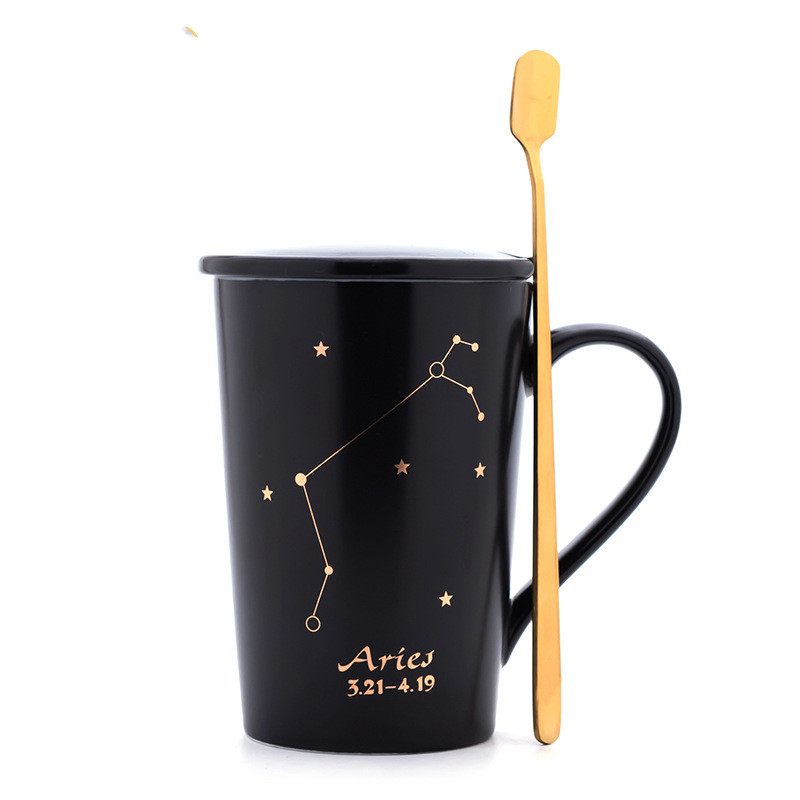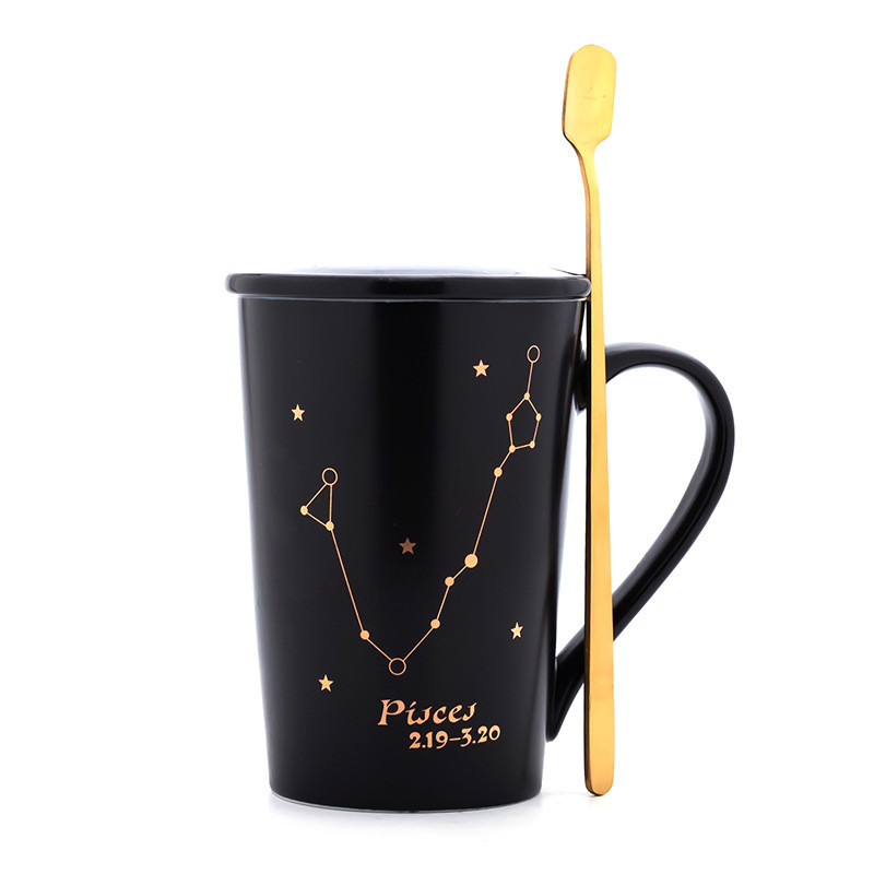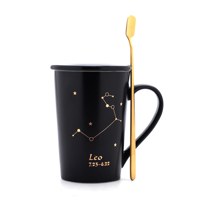Creativity 12 Constellations Mugs Ceramic Porcelain Coffee Mug Drinkware With Spoon Lid Zodiac Milk Breakfast Coffee Cup NEW HOT