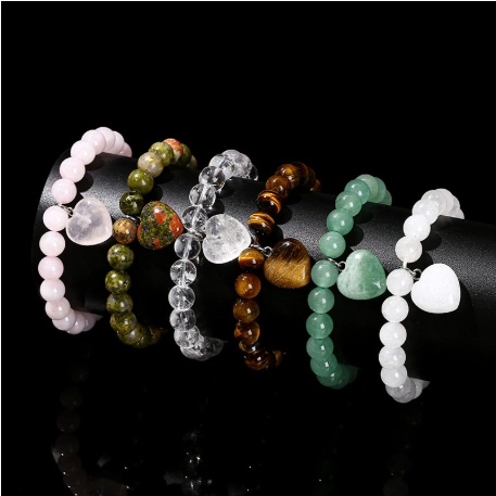 Color: natural pink crystal, natural green aventurine, 5A natural white crystal, natural yellow tiger's eye, natural white jade, natural unakite