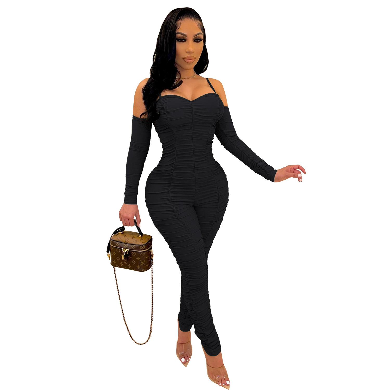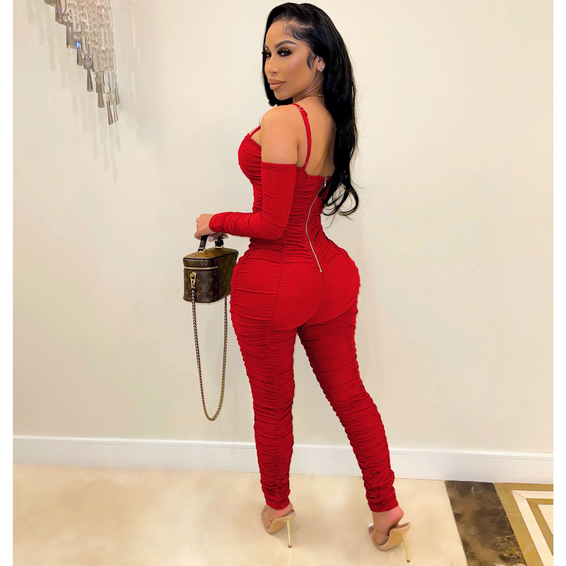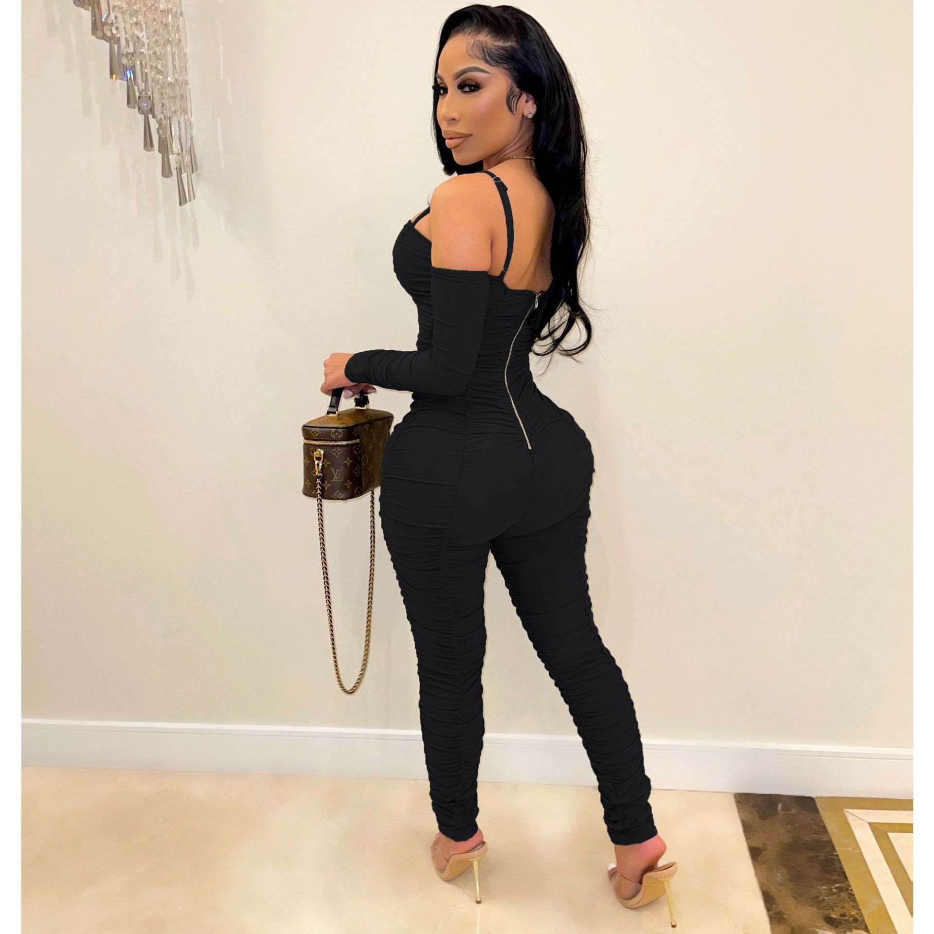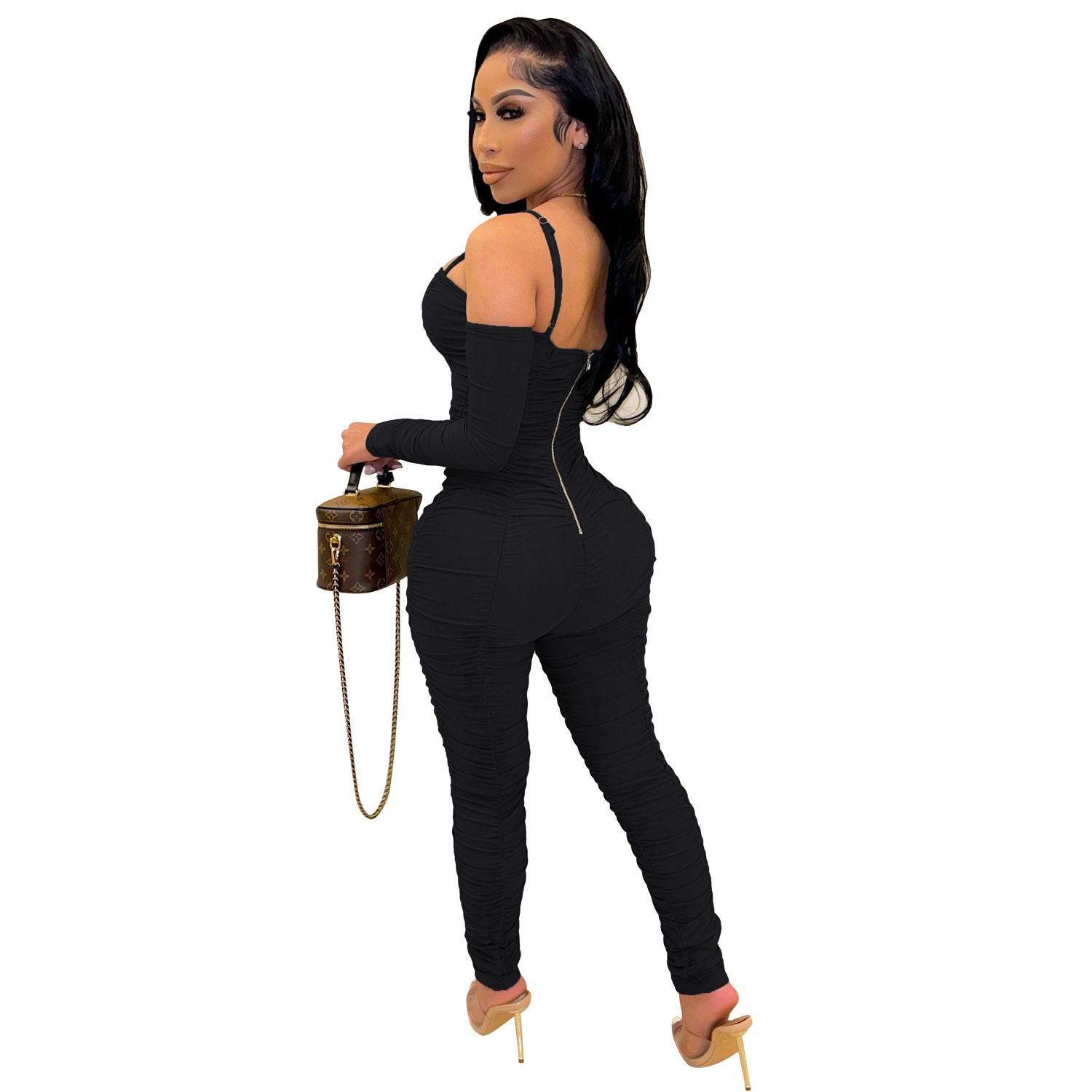 Tight Long Sleeve Spaghetti-strap Women's Jumpsuit