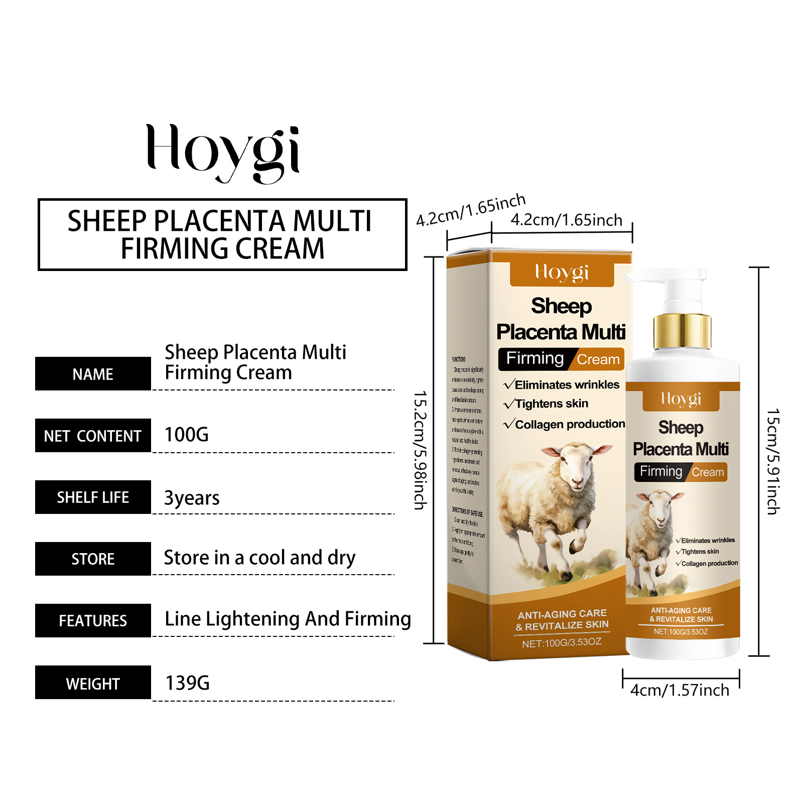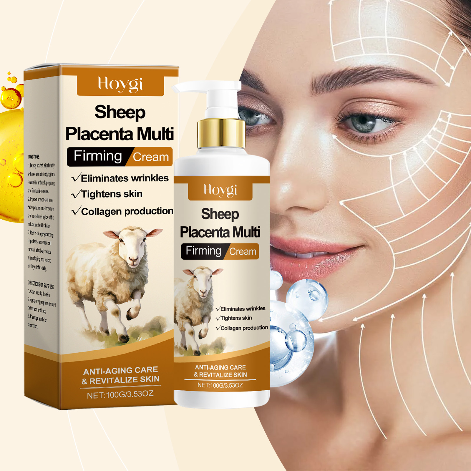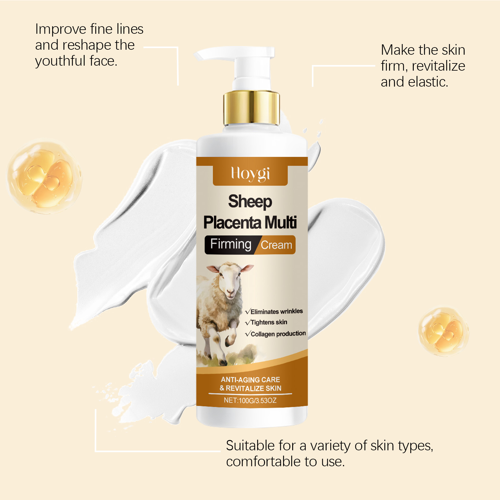 Ingredients: hydrolyzed sheep placenta extract, collagen, acetyl hexapeptide -8.