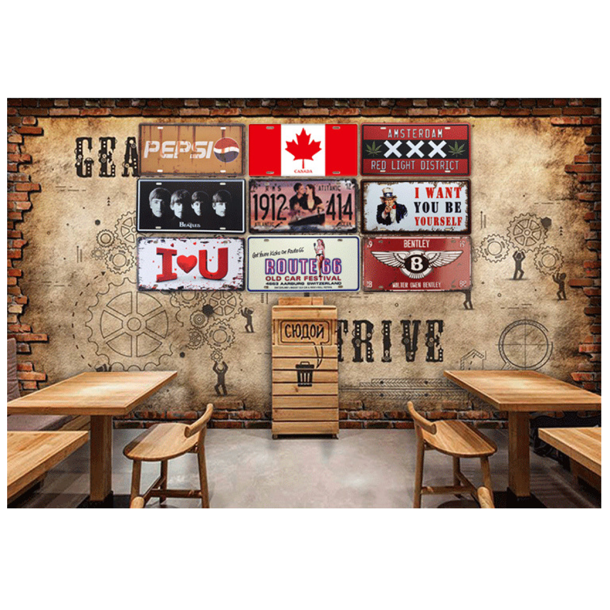 Product name: Retro tin painting decoration, wall decoration, wall hanging