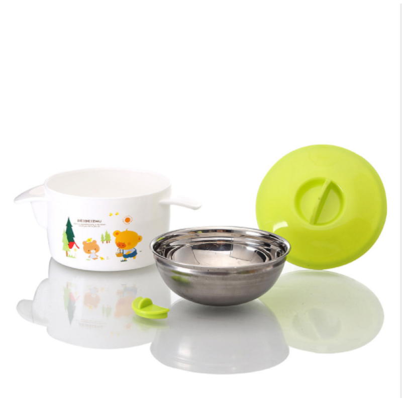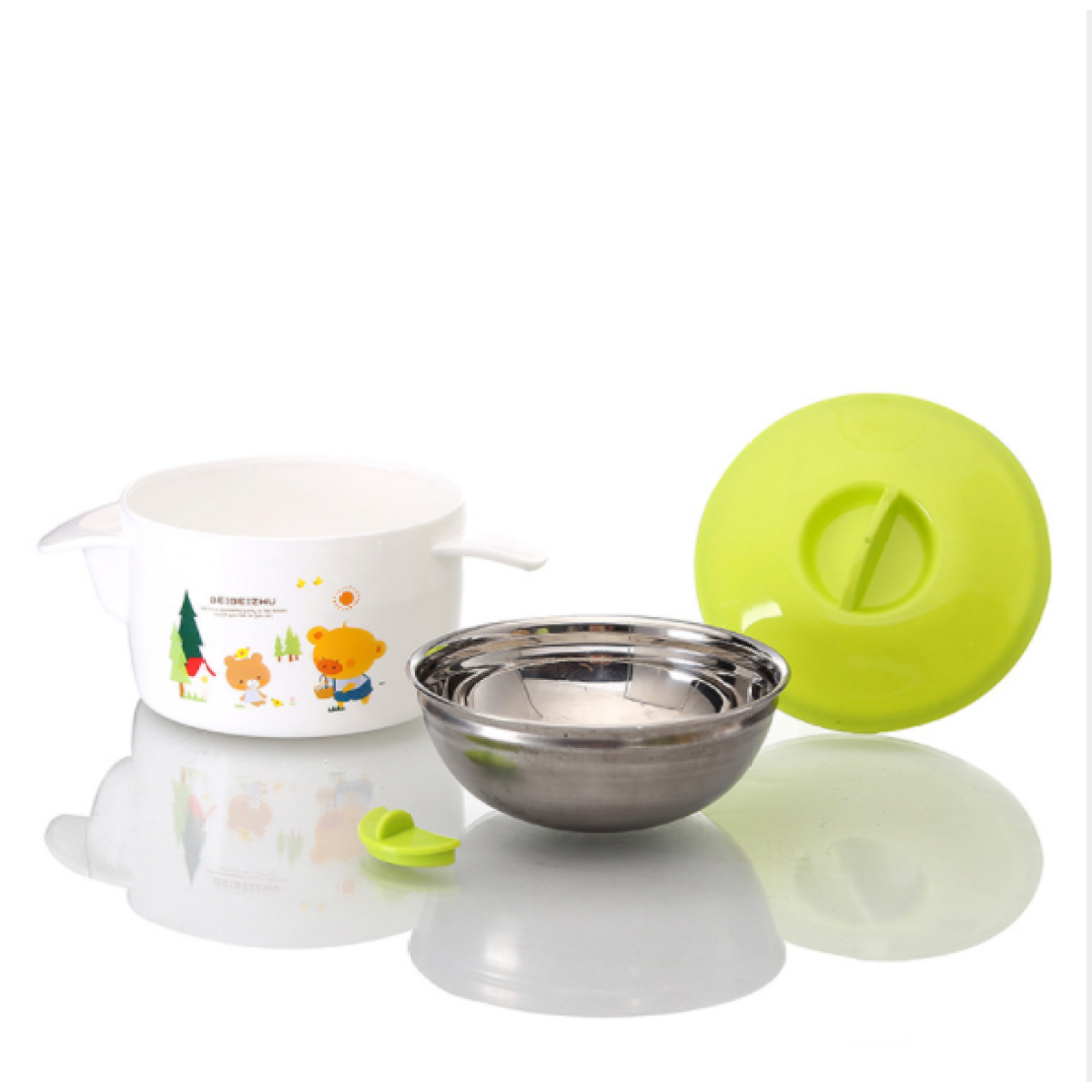 Tingli stainless steel plastic double children bowl water holding bowl anti drop insulation scald proof bowl feeding tableware