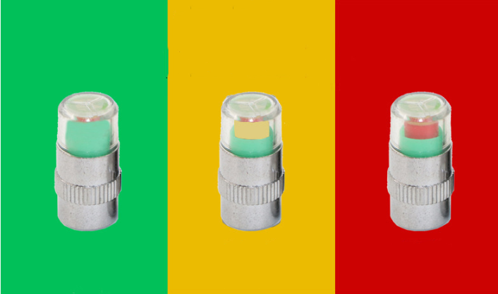 *The tire pressure is lower than the standard by about 10%, the transparent window should be yellow, and the air is timely (2.0-2.3bar), so yellow represents the warning (the tire pressure is low).