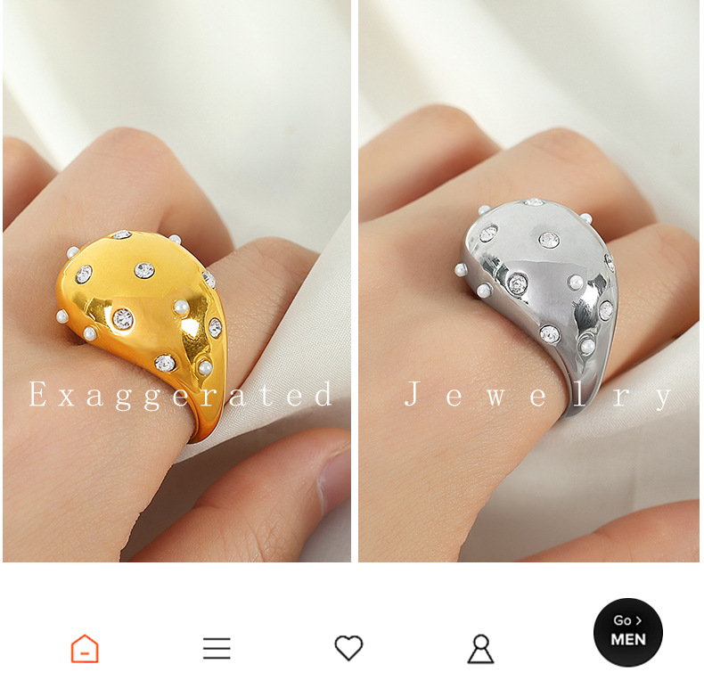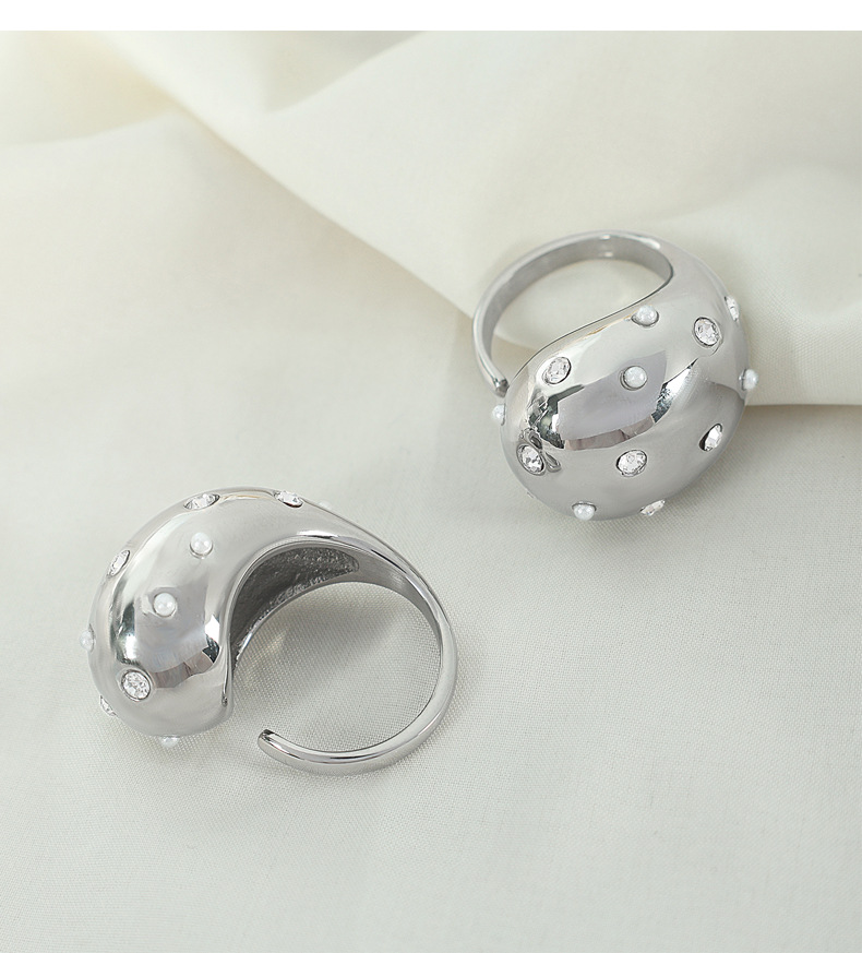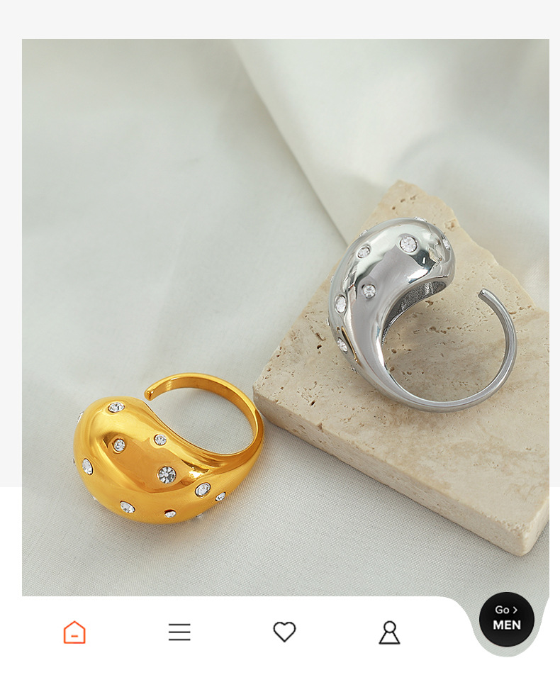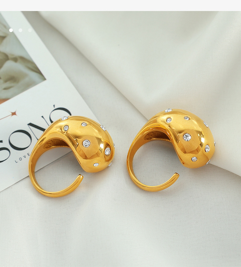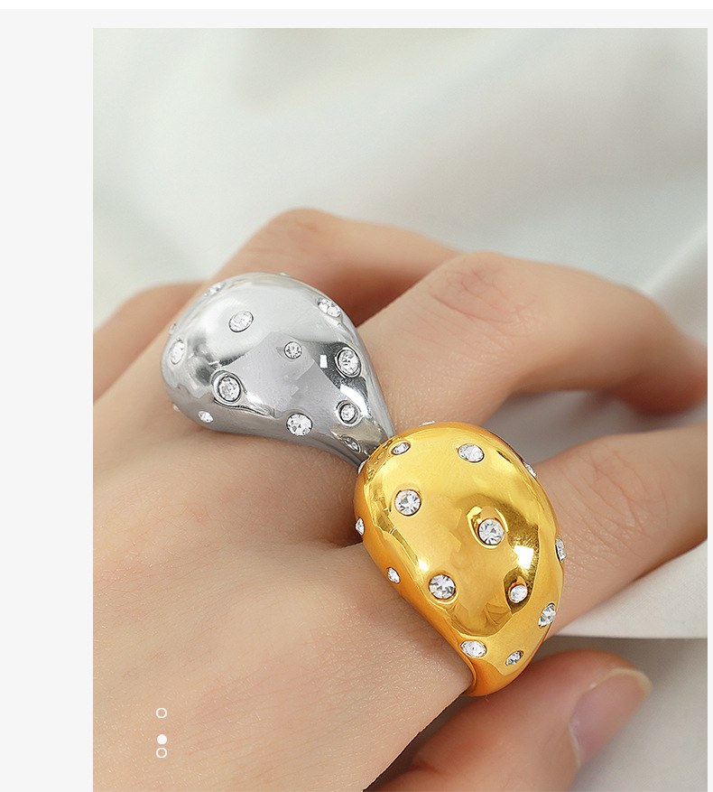 Titanium Steel 18K Gold Plated Ring, Micro-set Zircon & Rubber Bead, Adjustable Waterdrop Ring, Trendy Jewelry
