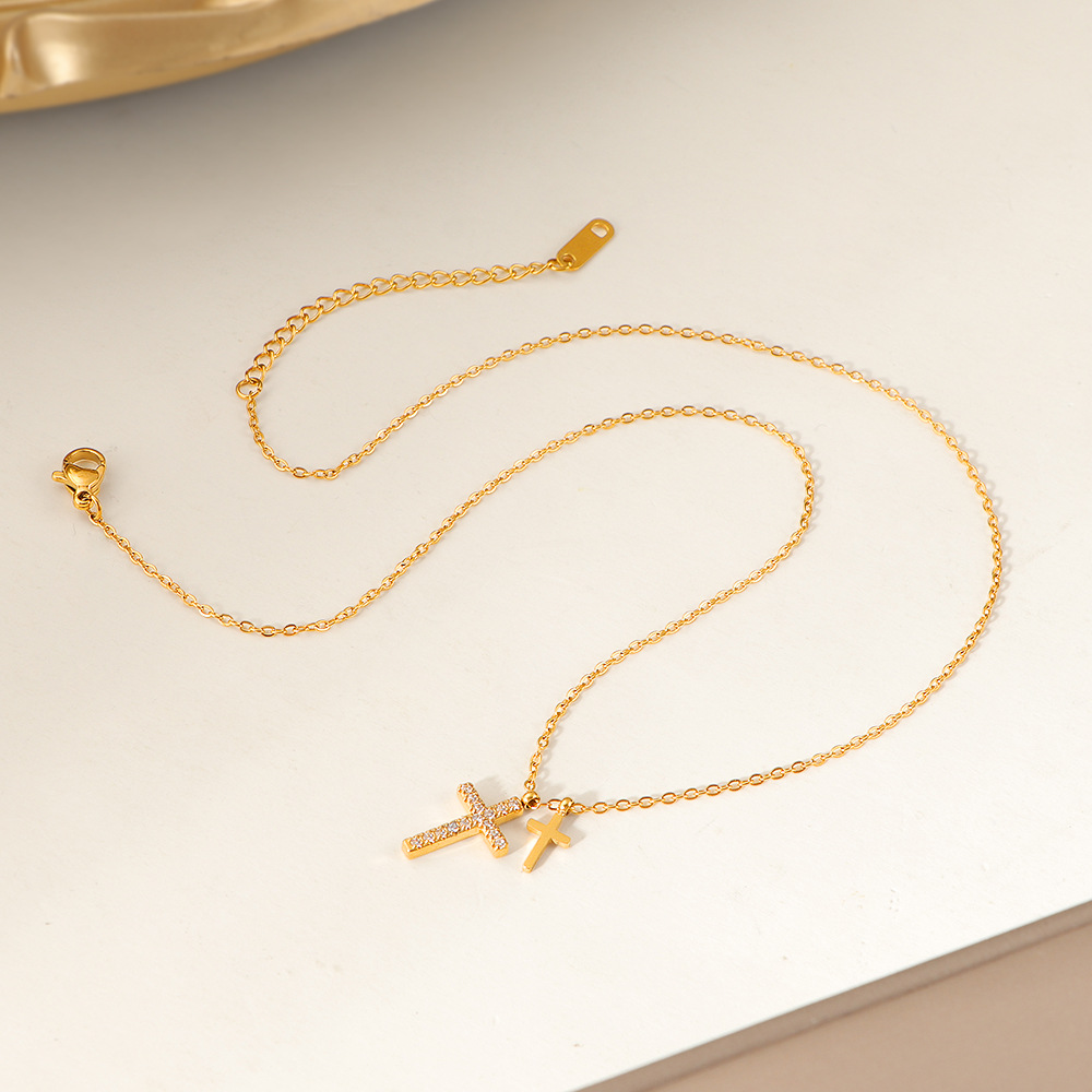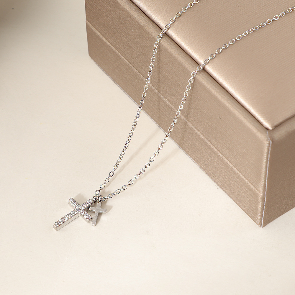 Color: FX76 Diamond-Encrusted Cross Necklace – Gold, FX76 Diamond-Encrusted Cross Necklace – Steel Color