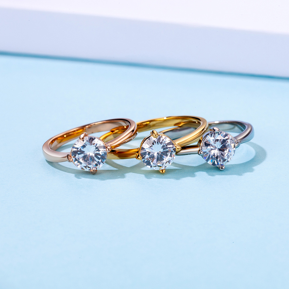 Titanium Steel Inlaid Zircon And Diamond Silver Female Ring