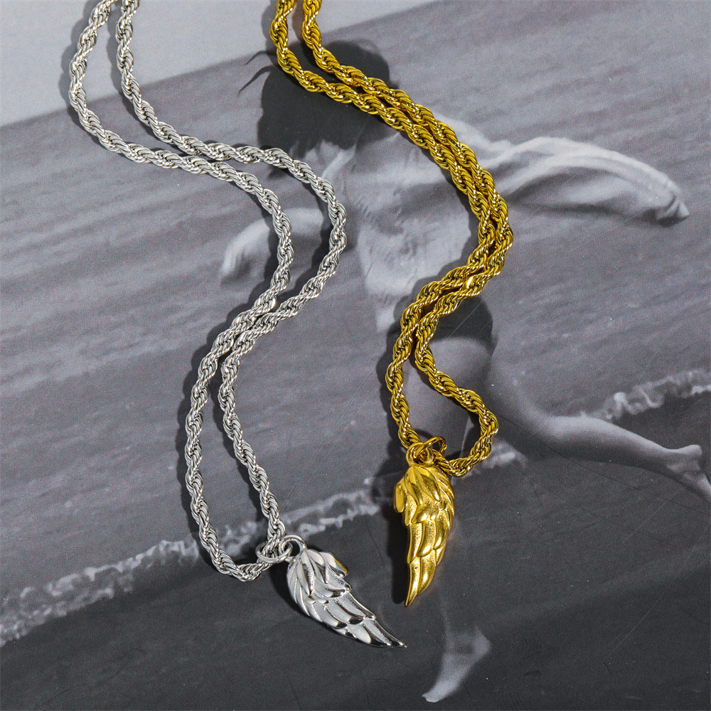 Titanium Steel Men's Classic Wing Pendant Necklace