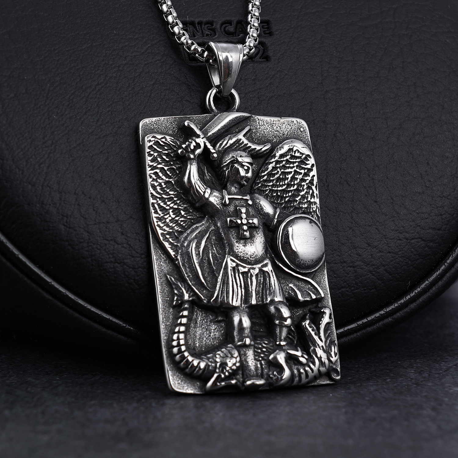 Titanium Steel Necklace Pendant With A Knight Design In A Vintage Style