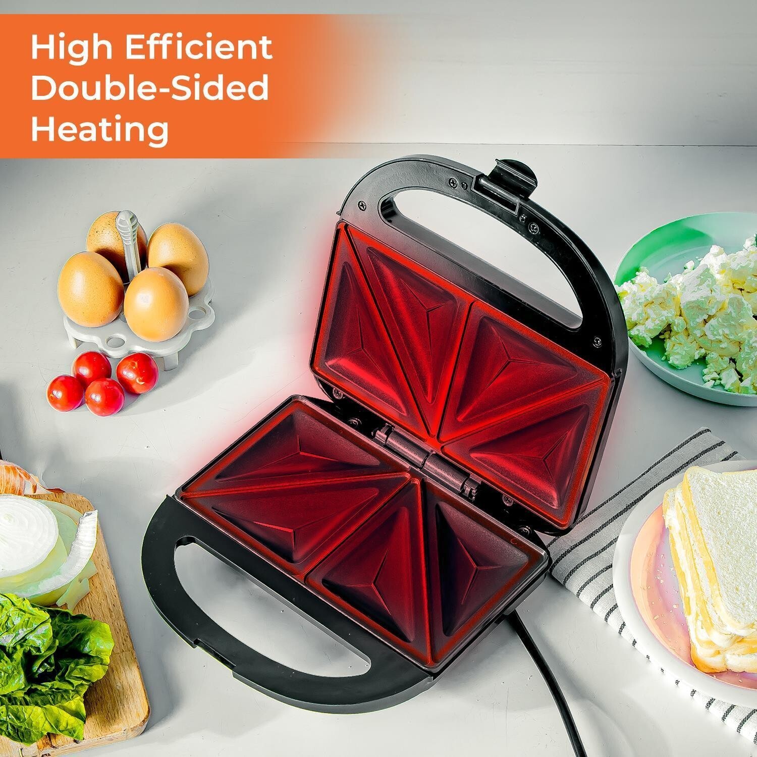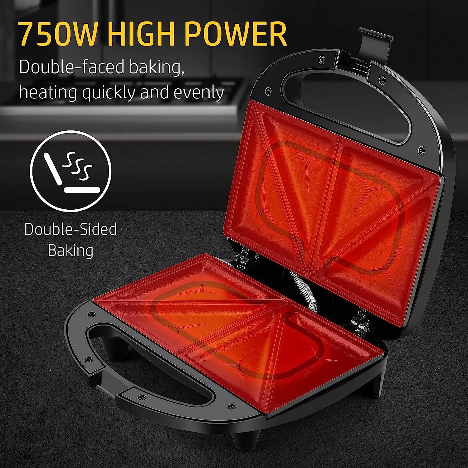 Efficient Cooking sandwichera: with a simple twist to close the top and lock in the heat, you can achieve tight and even cooking, the double-sided efficient heating system quickly and uniformly cooks your food, allowing you to prepare hot sandwiches, grilled cheese sandwiches, omelets, French toast, bacon sandwiches, homemade hot pockets, and desserts within minutes.