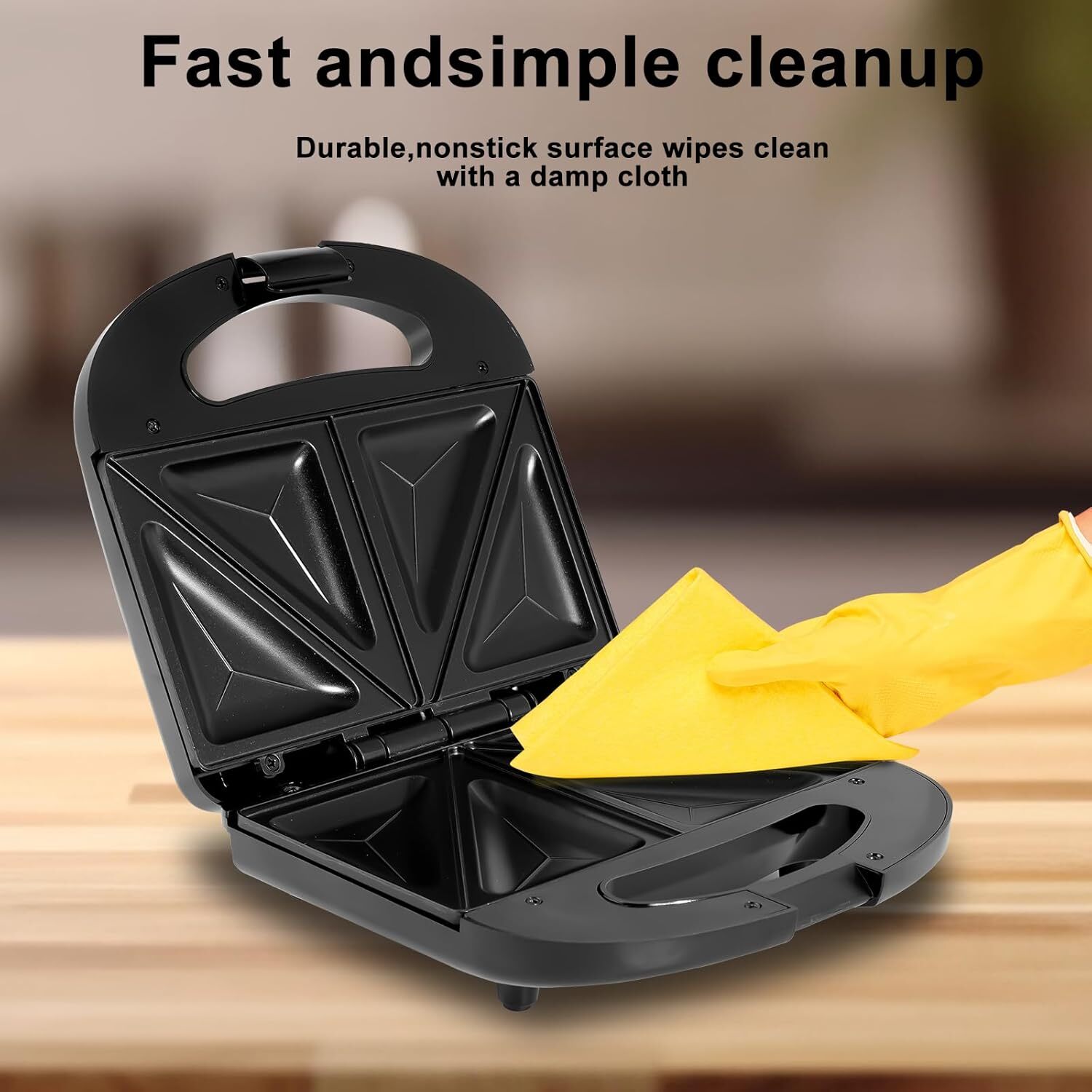 Sandwich grill press with Non-Stick Surface: The non-stick coating prevents food from sticking to the plate, making cleaning a breeze with just a wipe of a damp cloth. There's no need to worry about food residue, making the sandwich makers & panini presses healthier and more convenient to clean. The sandwich toaster press eliminates the need for oil or butter, thus healthier and easier to maintain.