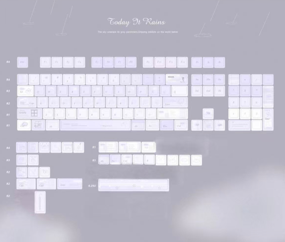 Todays Featured Product PBT Keycaps With 5-sided Dye-sublimation In A Rain-themed Design