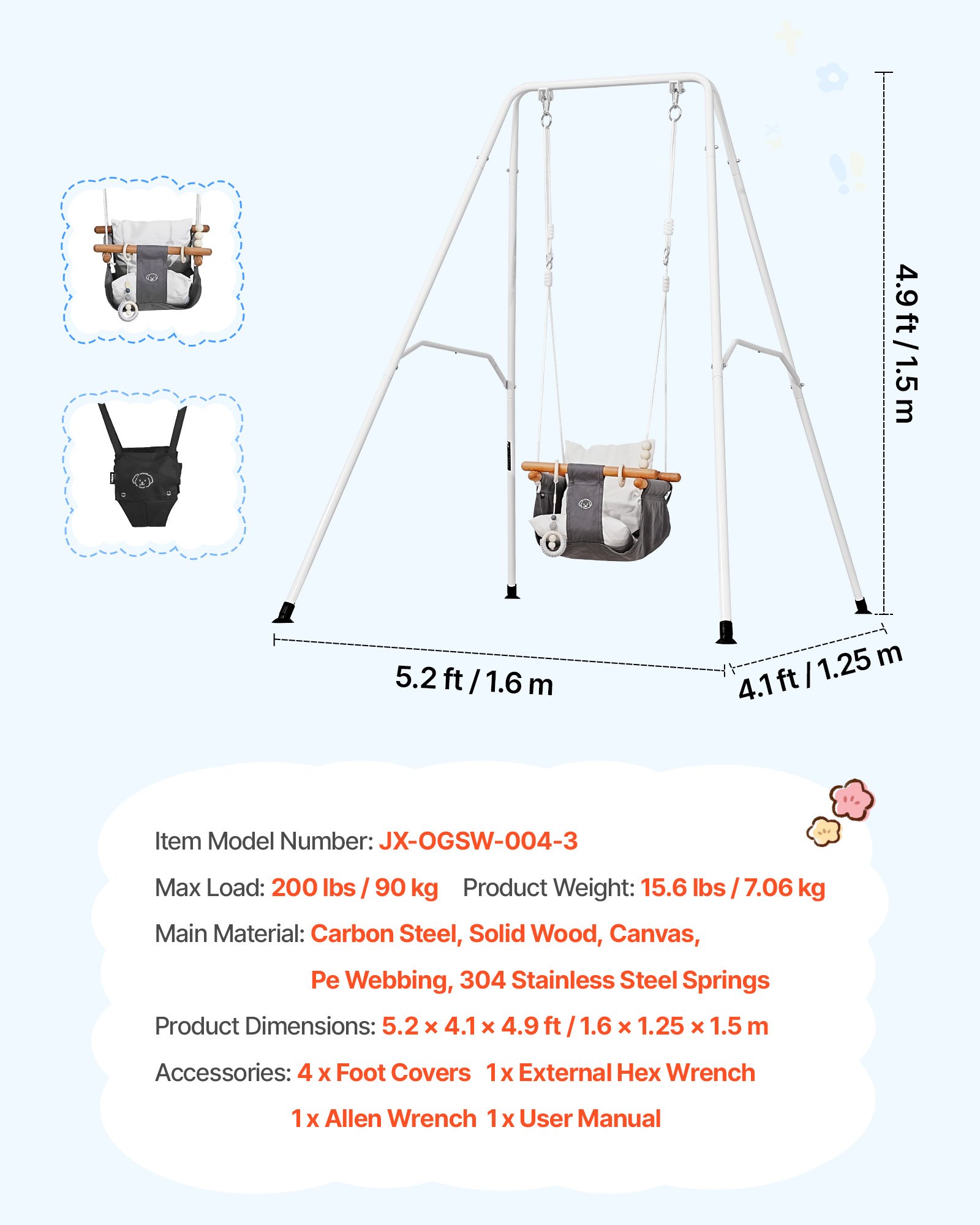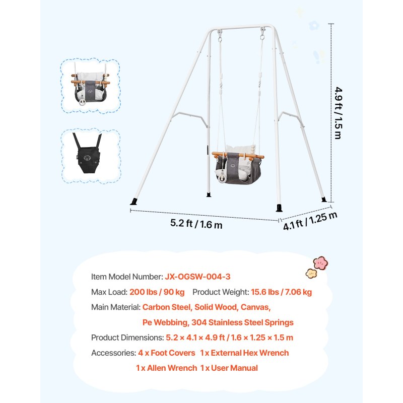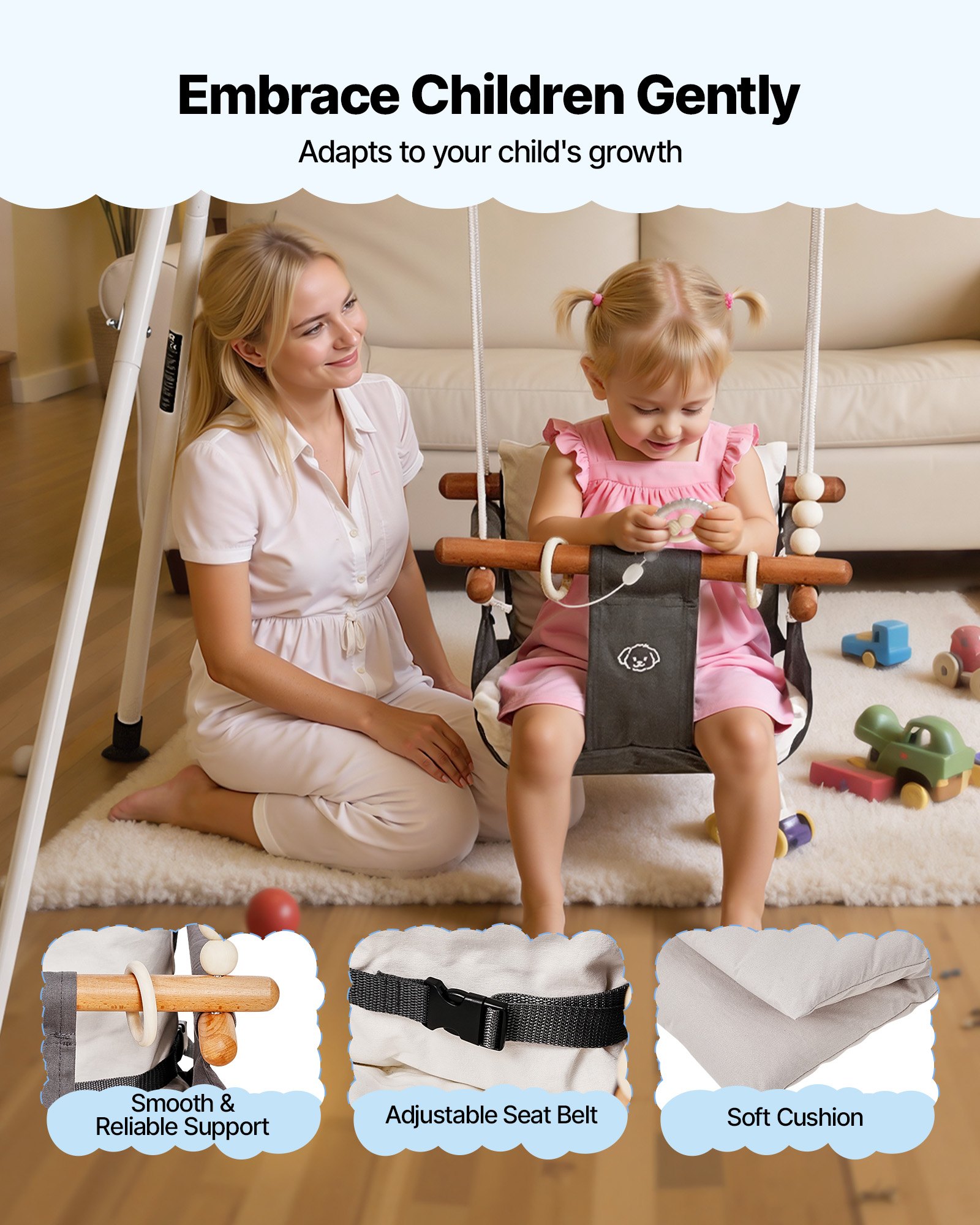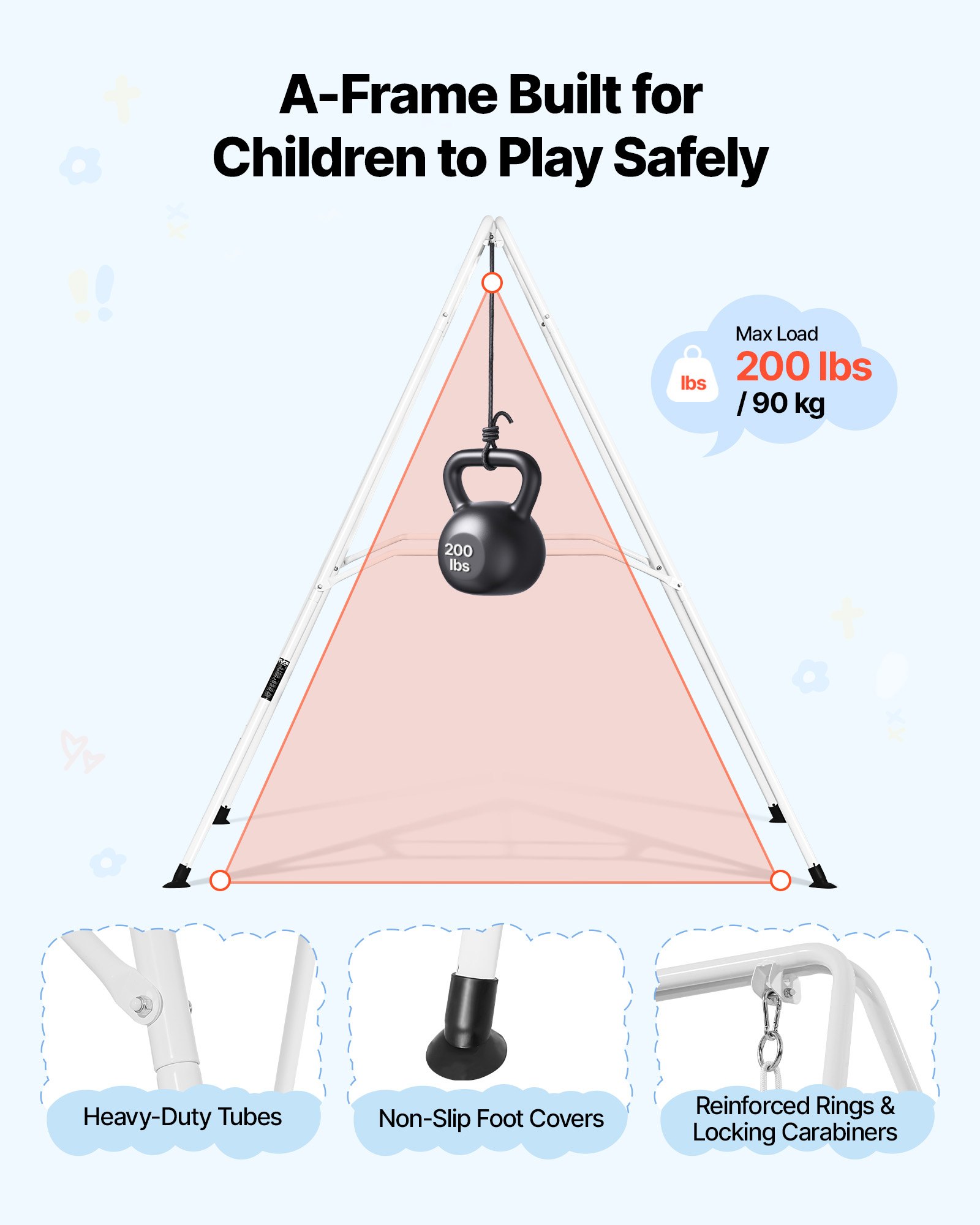 Sturdy Frame: The steel A-frame structure forms a stable triangular base that supports gentle swinging and jumping while helping keep the toddler swing set and jumper steady during use