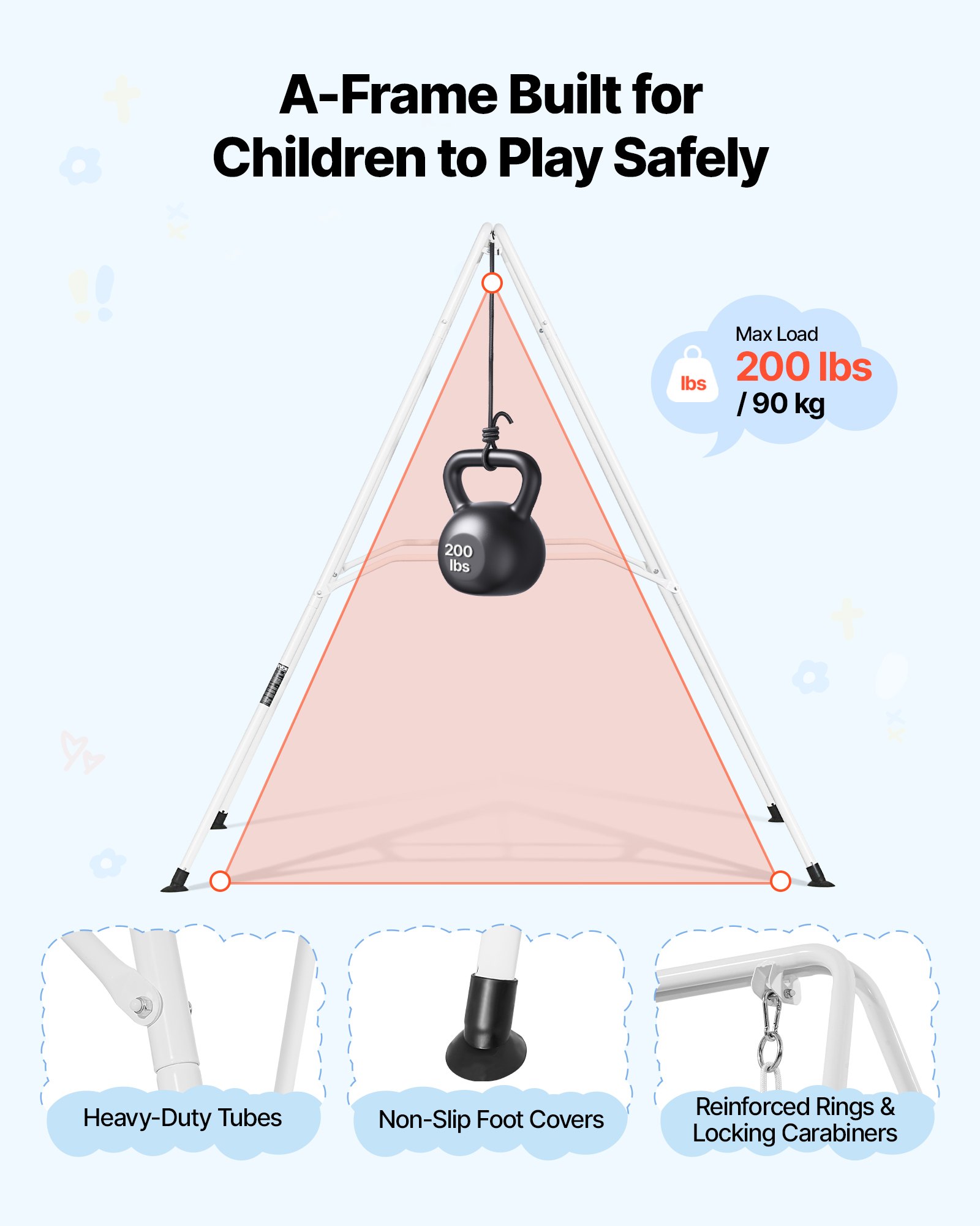 Sturdy Frame: The steel A-frame structure forms a stable triangular base that supports gentle swinging and jumping while helping keep the toddler swing set and jumper steady during use