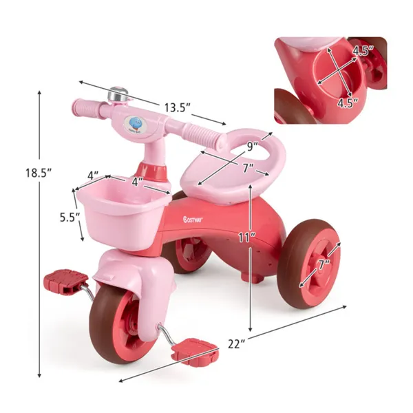 Toddler Tricycle For 3-5 Years - Stable Triangular Structure, Front & Rear Storage Baskets