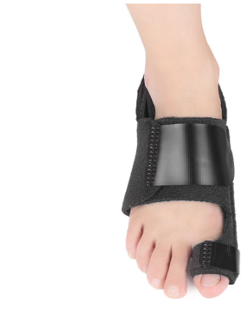 -The toe orthosis uses an integrated aluminum splint support to provide gentle pressure to keep the big toe aligned and held in place by Velcro fasteners around the instep without slipping.