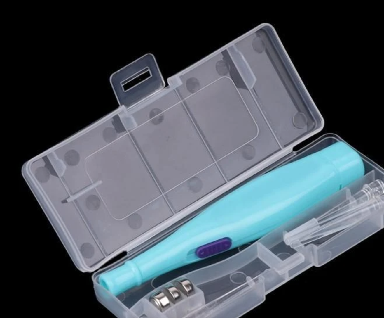 With a transparent storage case and a stainless steel ear pick.