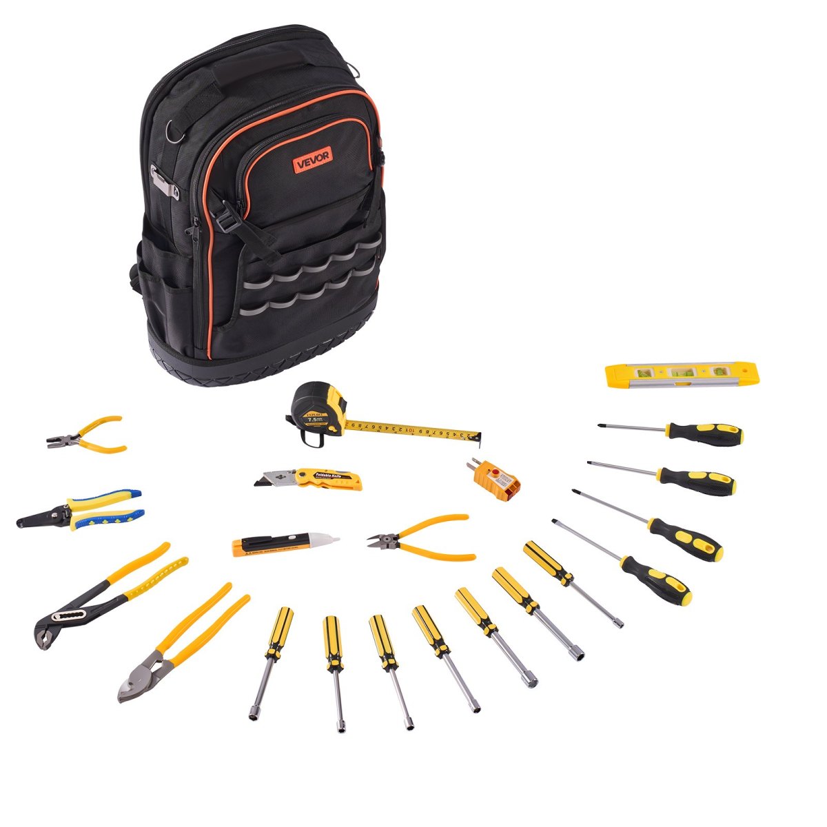 21-Piece Tool Set for Everyday Use: This 21-piece tool set has everything you need—4 screwdrivers, 7 socket drivers, cable cutter, pliers, level, tester, wire stripper, voltage tester, electrician knife, and tape measure! Ready to use out of the box for all your repair, testing, and measuring needs