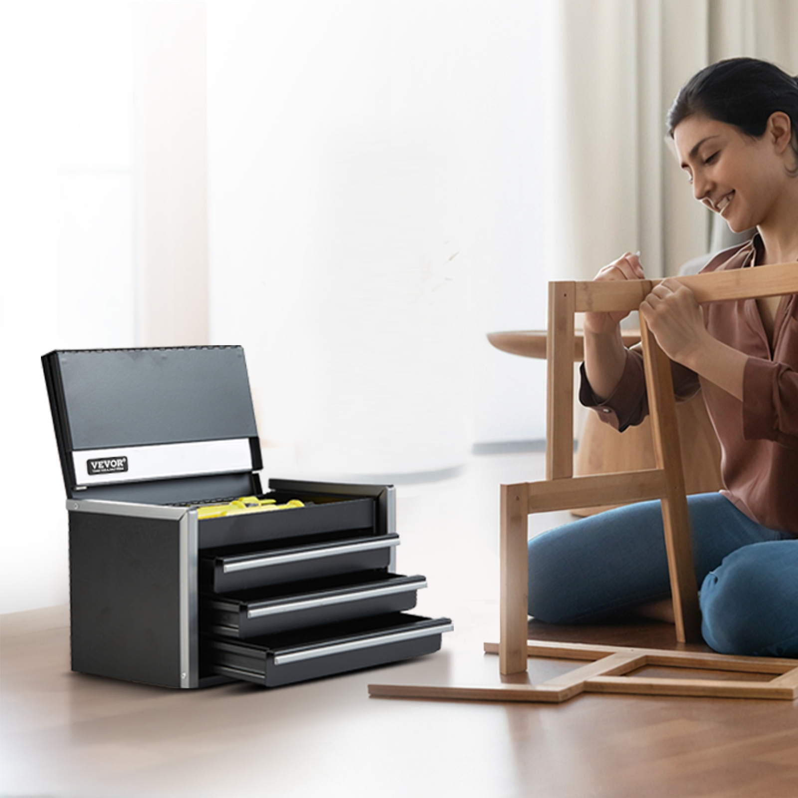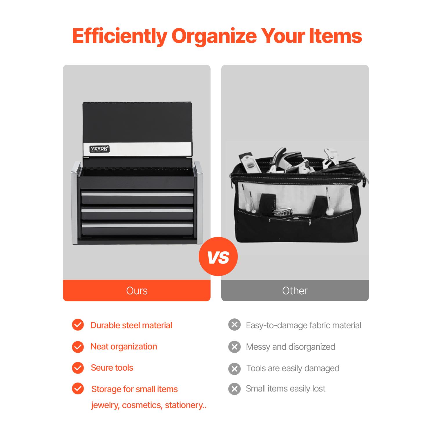 Convenient Opening & Closing: The top cover features a magnetic locking design. Simply close the top lid to keep the drawer toolbox securely locked, ensuring the drawers won’t accidentally slide out during movement and avoiding items falling. The smooth sliding drawers provide easy access without any sticking, allowing for smooth and stable opening.