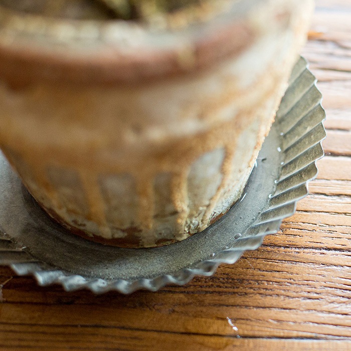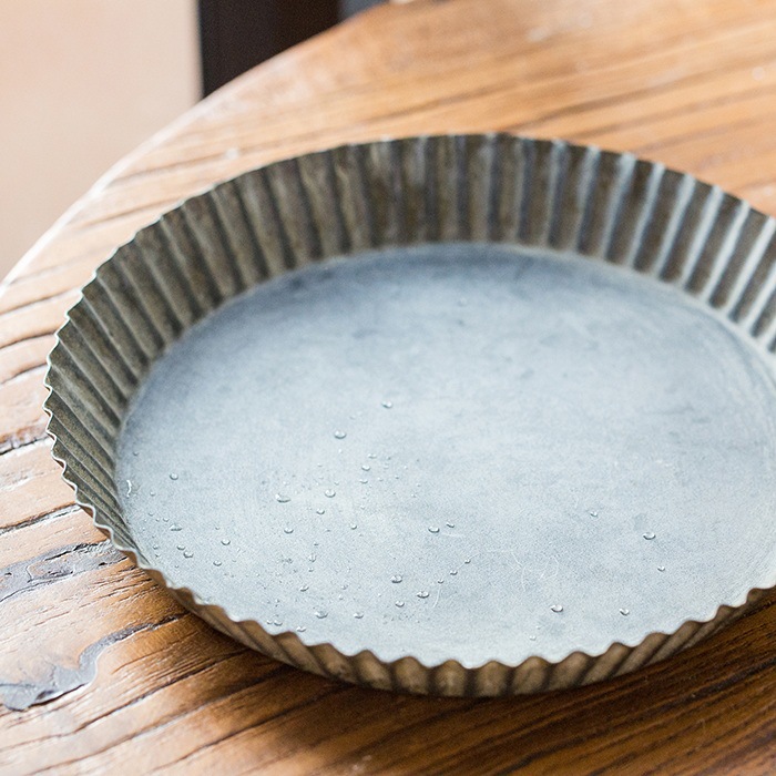 Unique floral rim handcrafted metal tray, with vintage atmosphere.