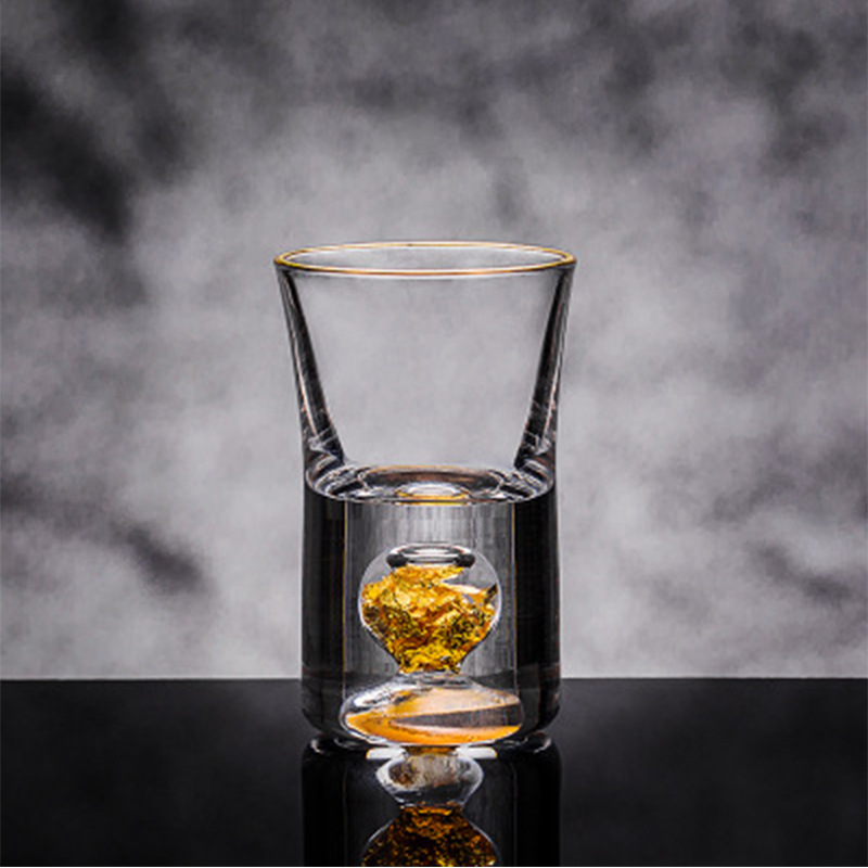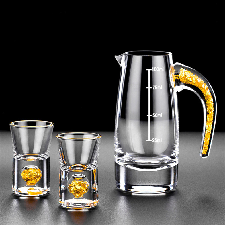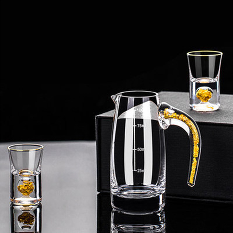 Creative high-grade white spirit glass set with gold foil, creative glass set with shot glass, one shot with spirit glass